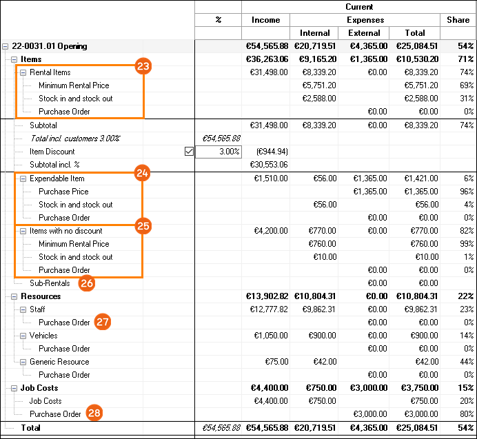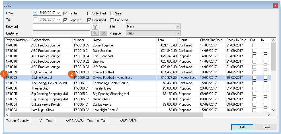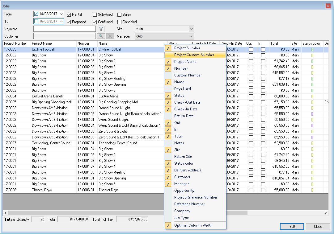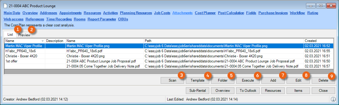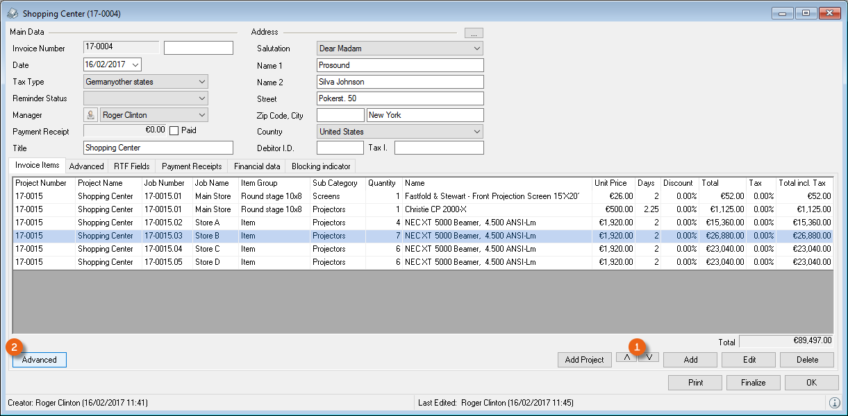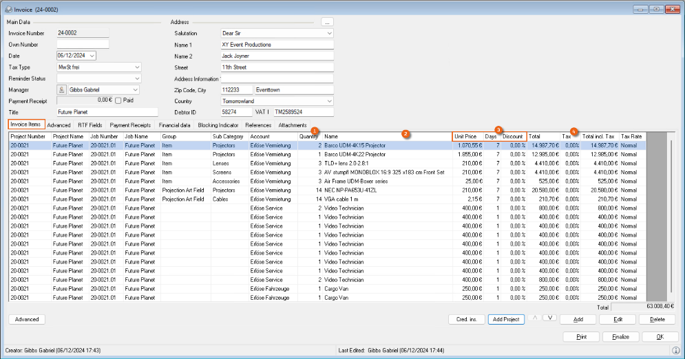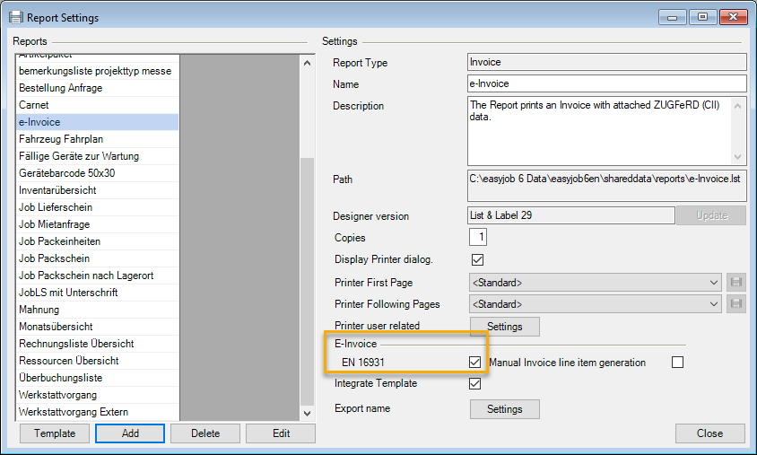 Reports are displayed in easyjob on the basis of templates. Reports can include proposals, packing lists, delivery notes and invoices. During the easyjob installation, various sample templates will be created in the individual program modules.