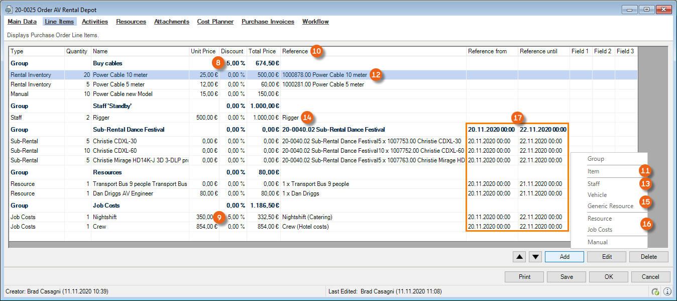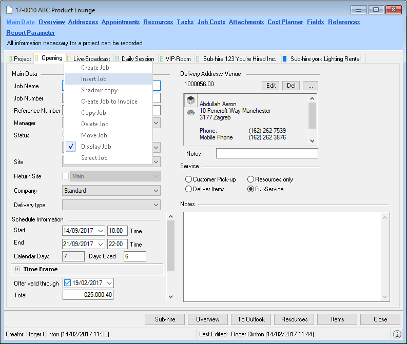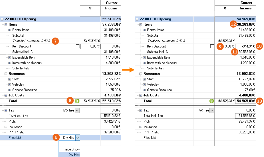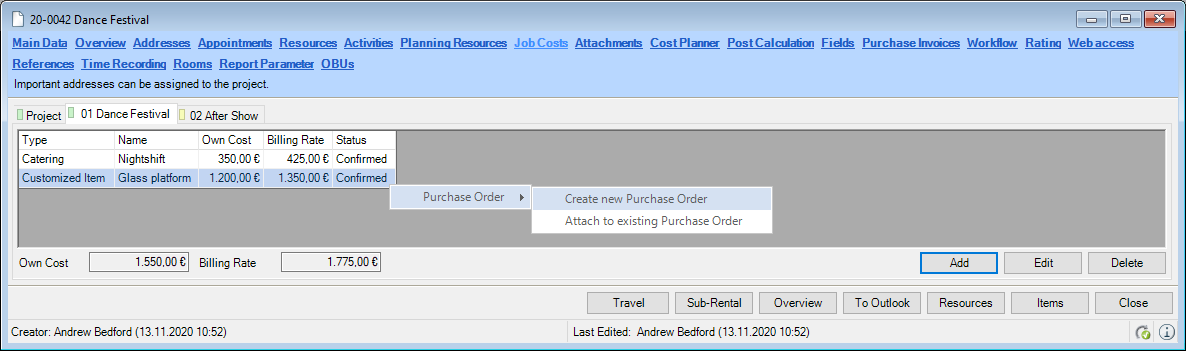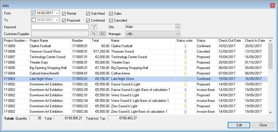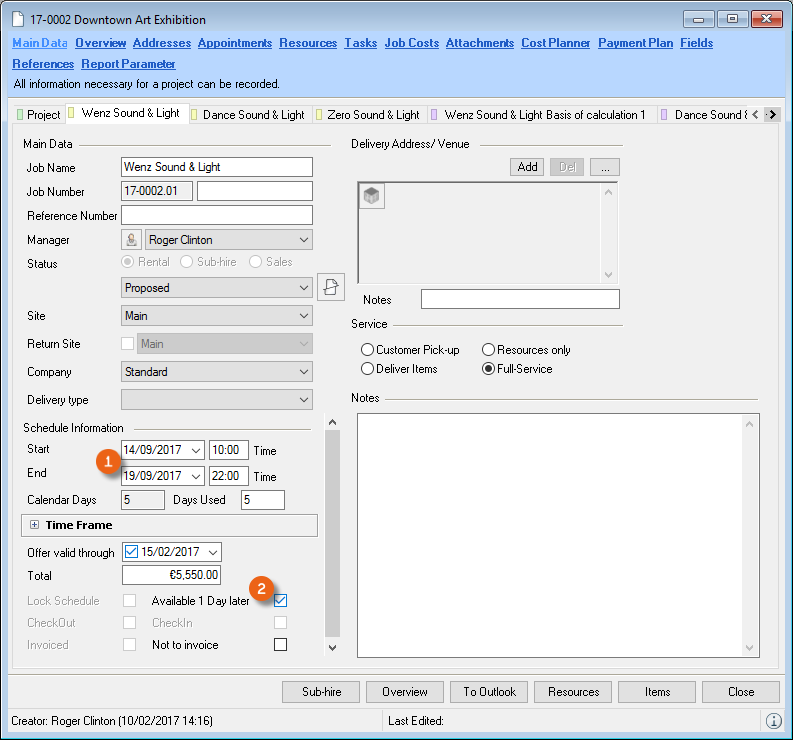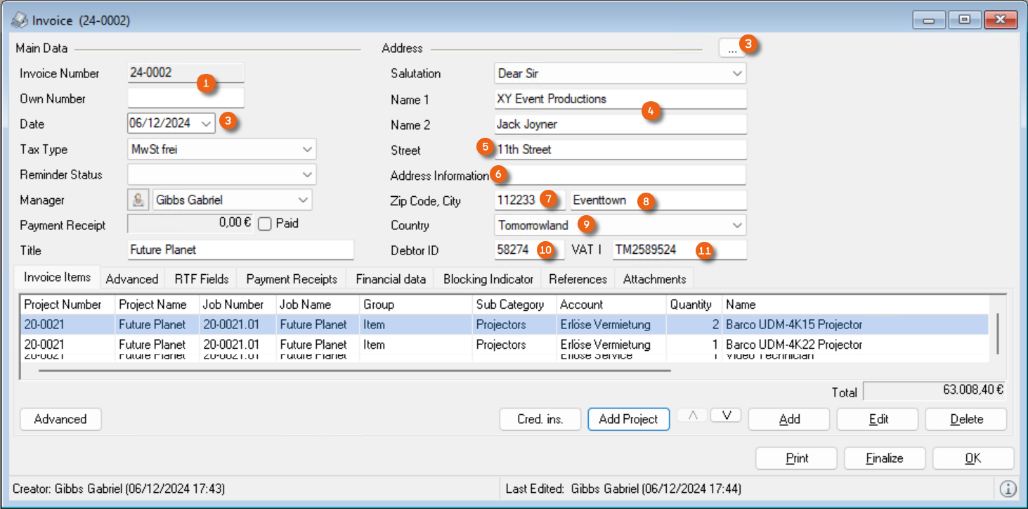 Reports are displayed in easyjob on the basis of templates. Reports can include proposals, packing lists, delivery notes and invoices. During the easyjob installation, various sample templates will be created in the individual program modules.