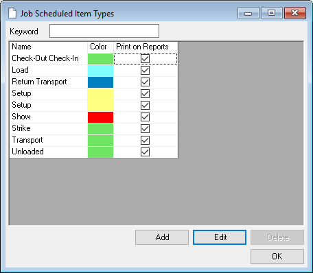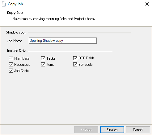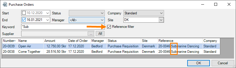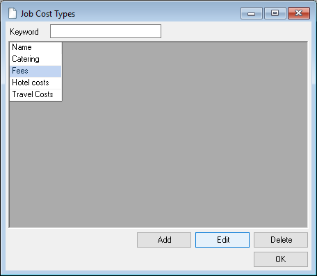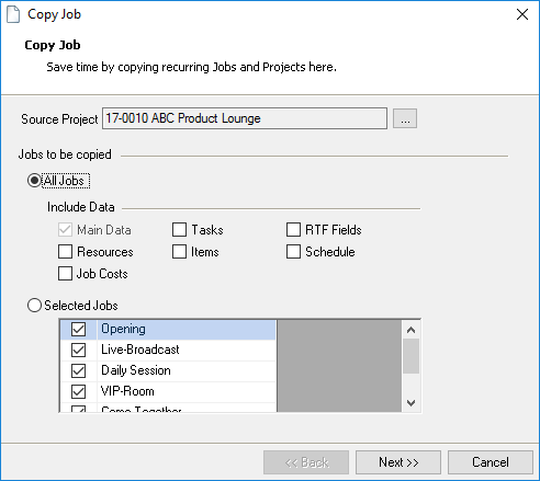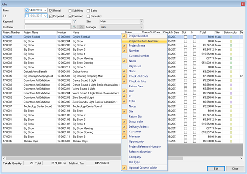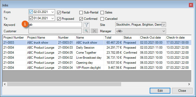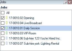 A keyword filter is available for most selections. There you can enter a search term. The filters search context related fields by default. Therefore for a job search, the Job Name, Number and Custom Number will be searched.