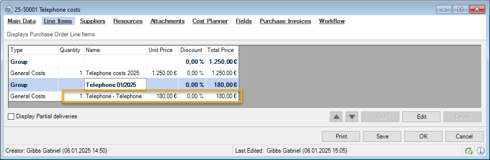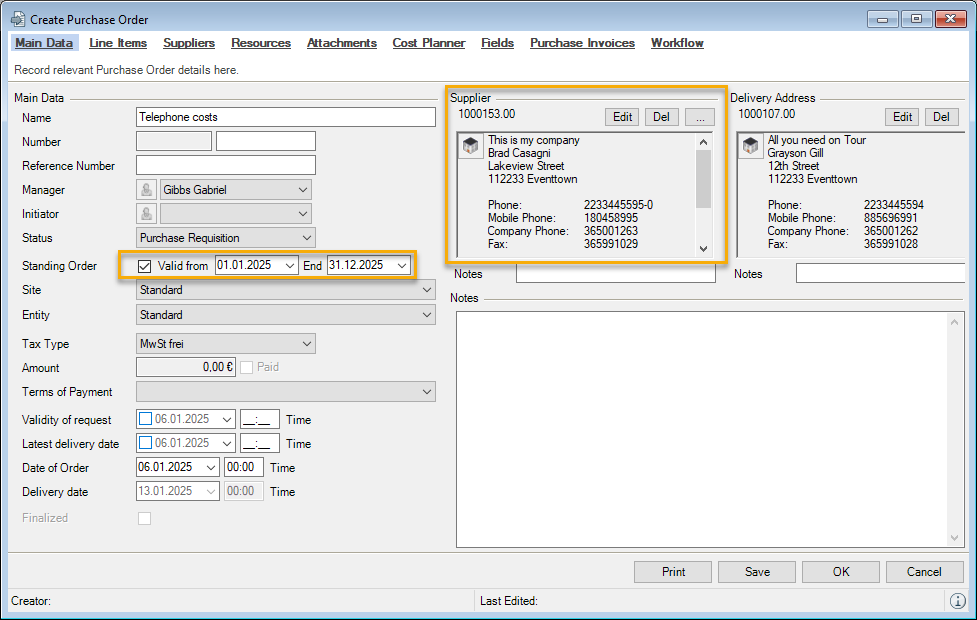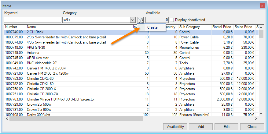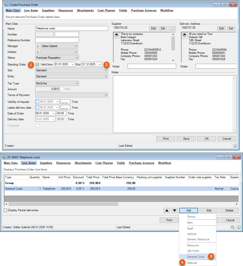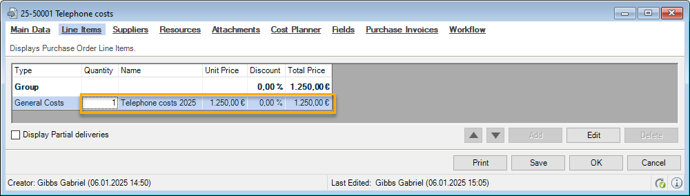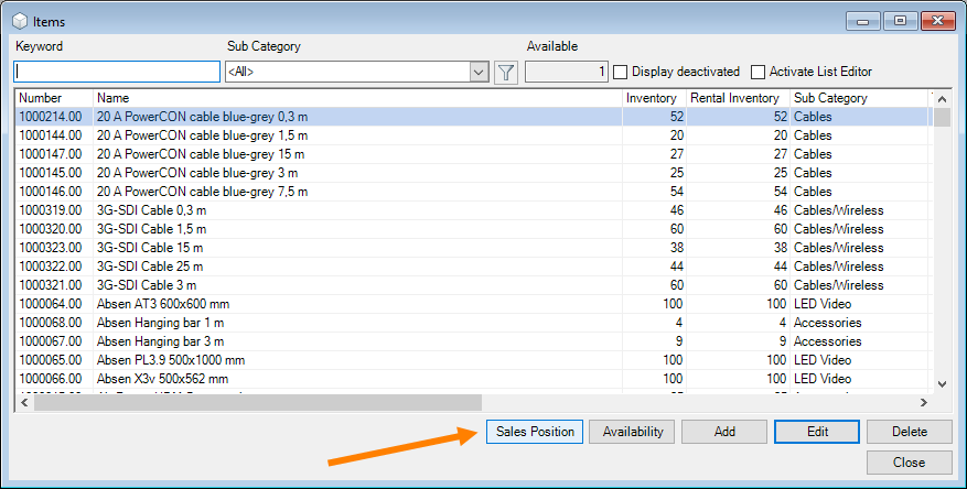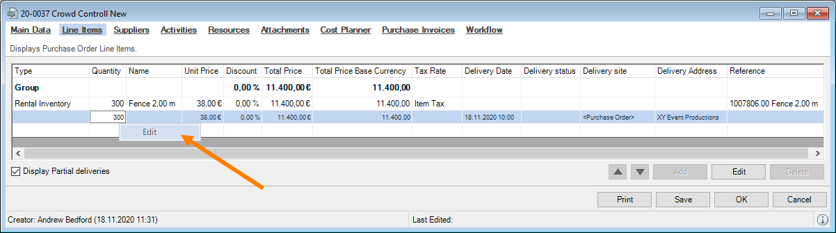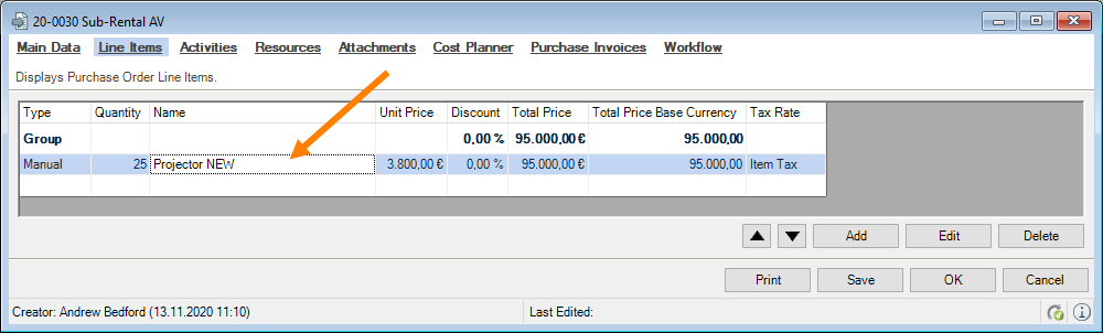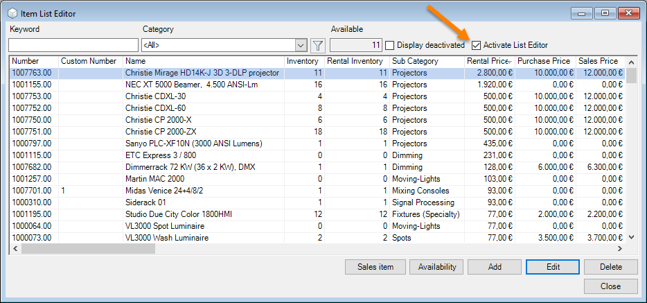 You can directly enter data in some lists. With the list editor, you can use this feature within the items and addresses master data. To do so, check the box in the Activate List Editor field.
