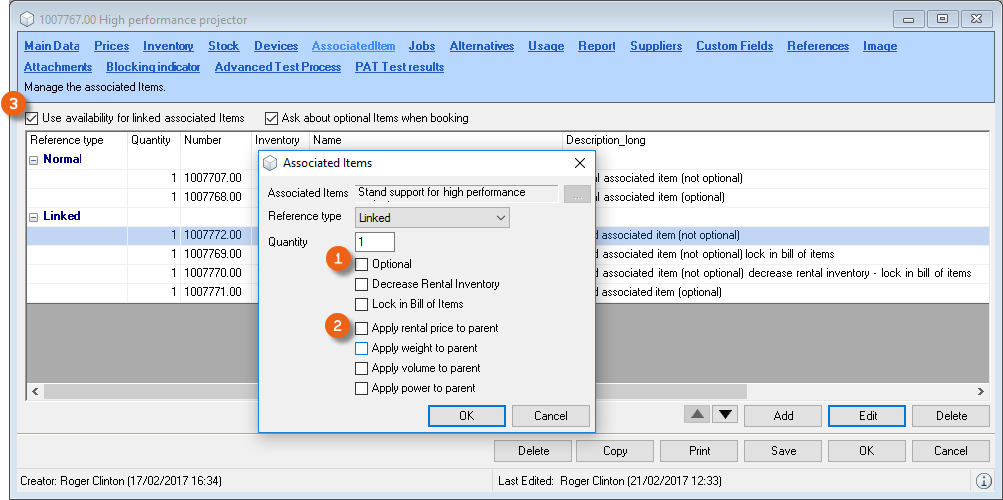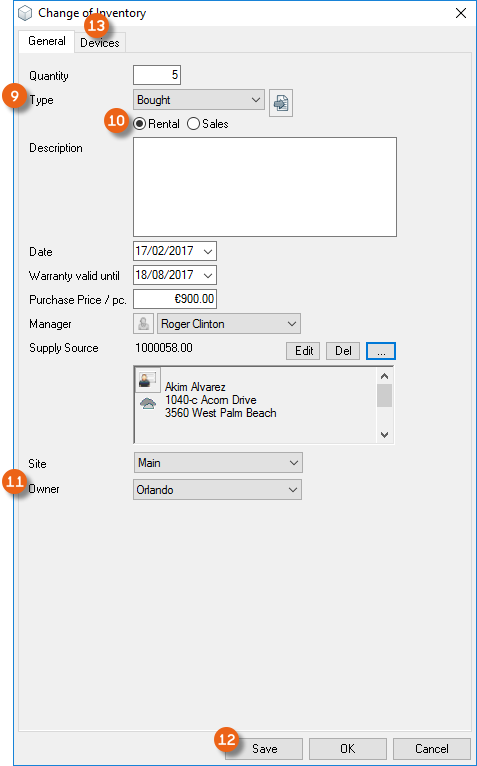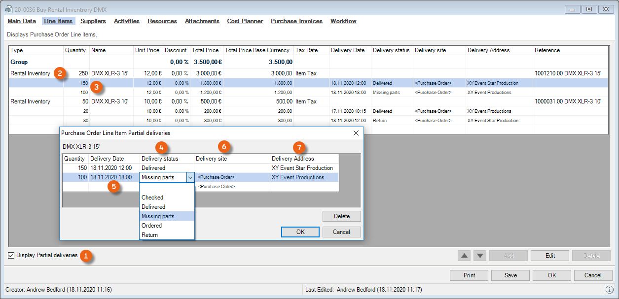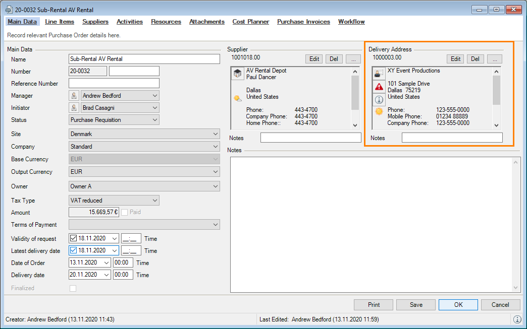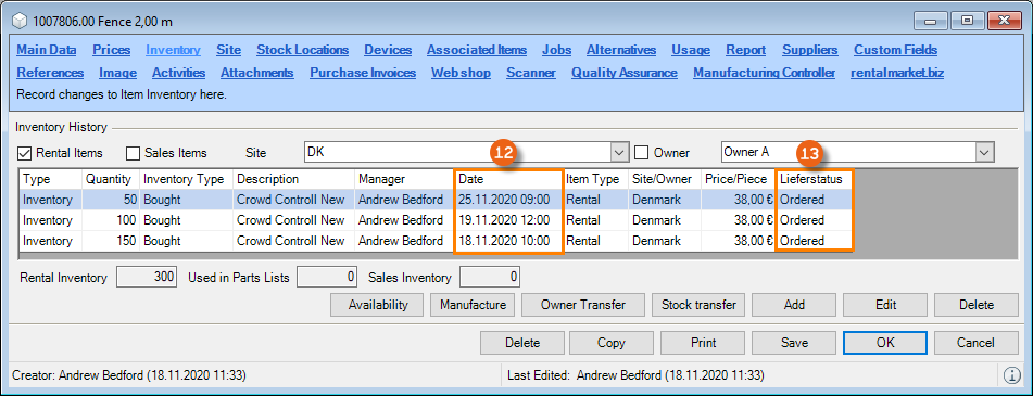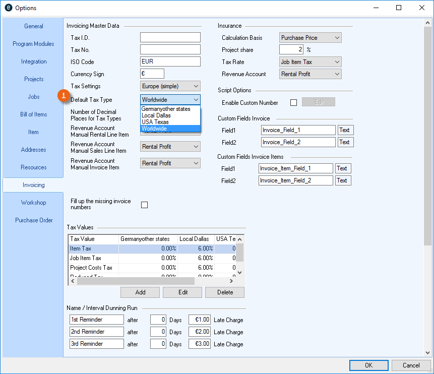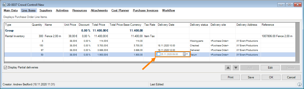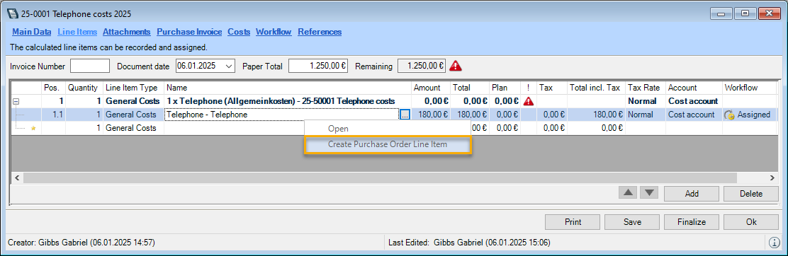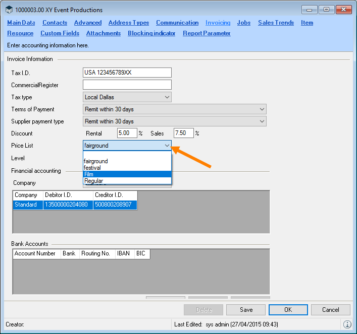 You can directly enter data in some lists. With the list editor, you can use this feature within the items and addresses master data. To do so, check the box in the Activate List Editor field.
