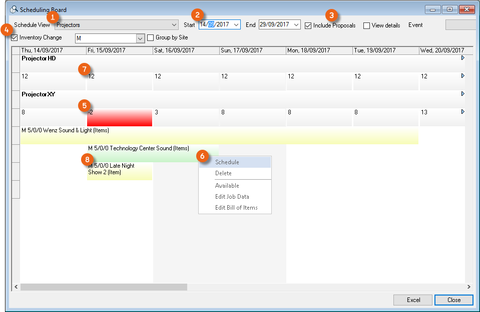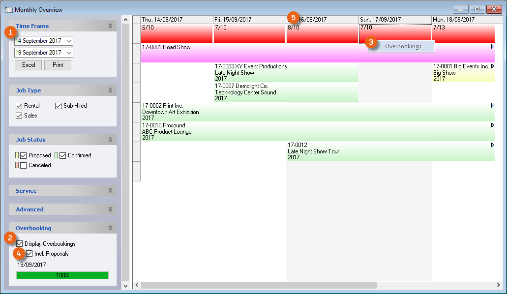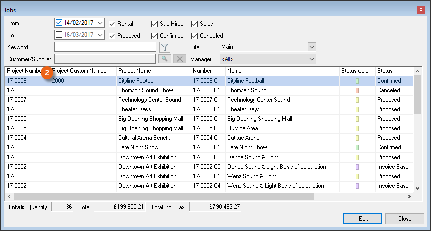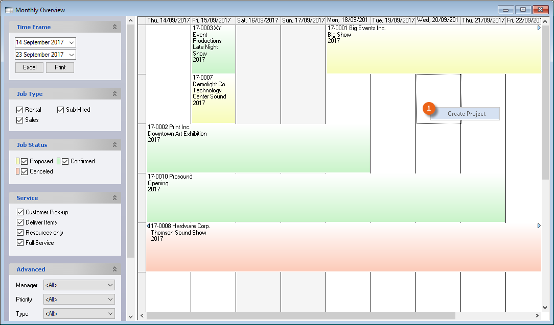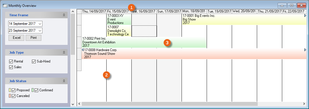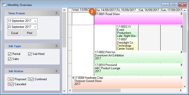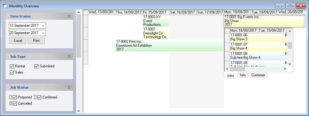 Process Status![]() | In general, filter only confirmed jobs, as staff is not scheduled for proposed or canceled projects. |