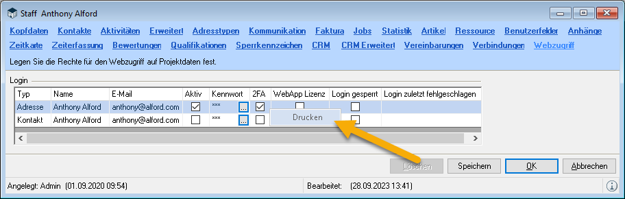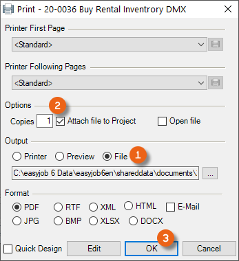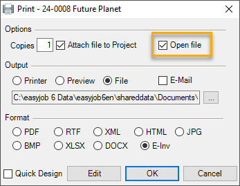You can also output to a printer or use it in an electronic document. The electronic document can also be attached to an email. easyjob uses the computer's standard email application.
