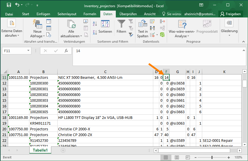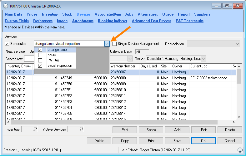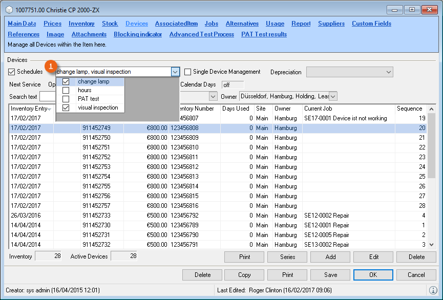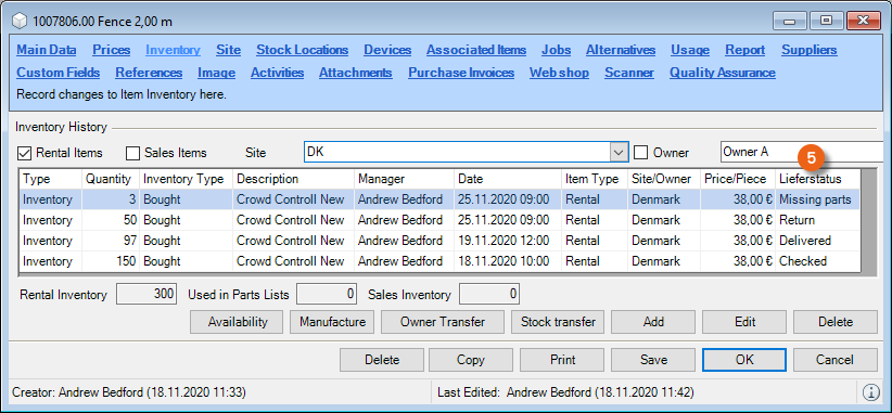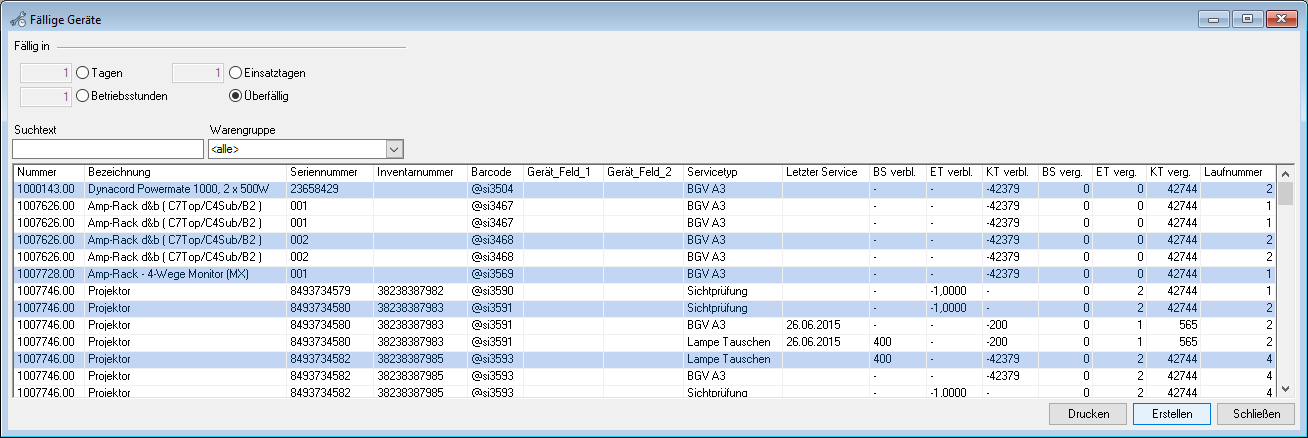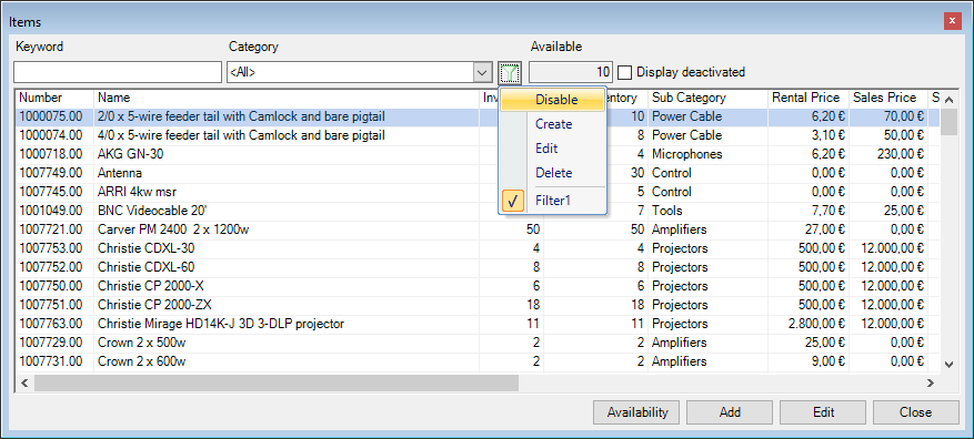In addition to the predefined data filters, it is possible to create your own data filters in many lists. An active data filter is indicated with the green filter symbol