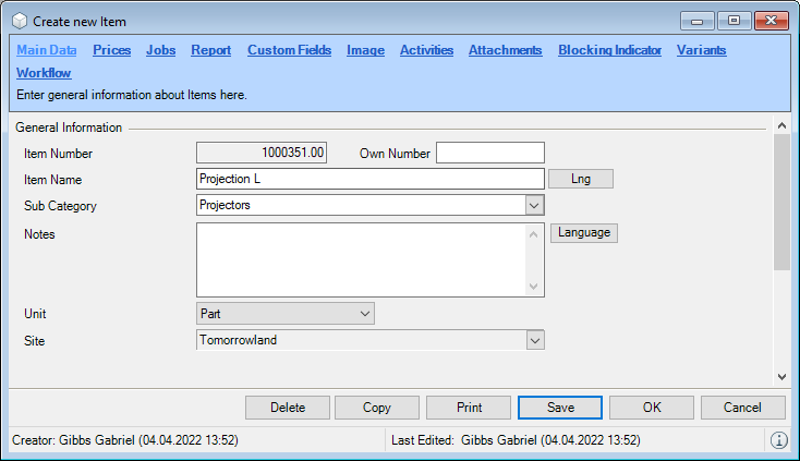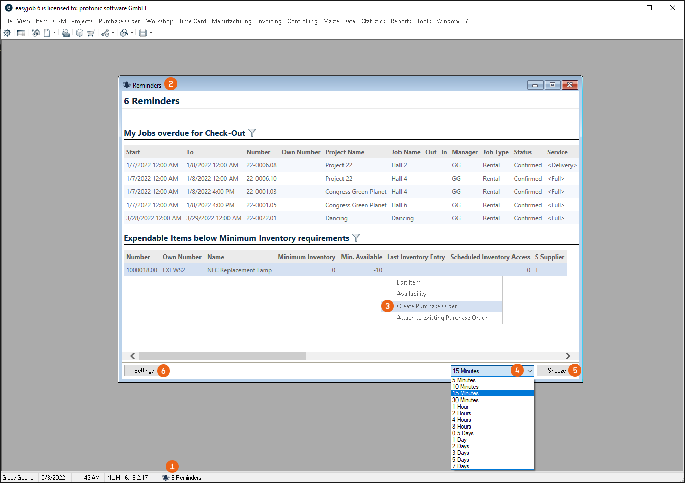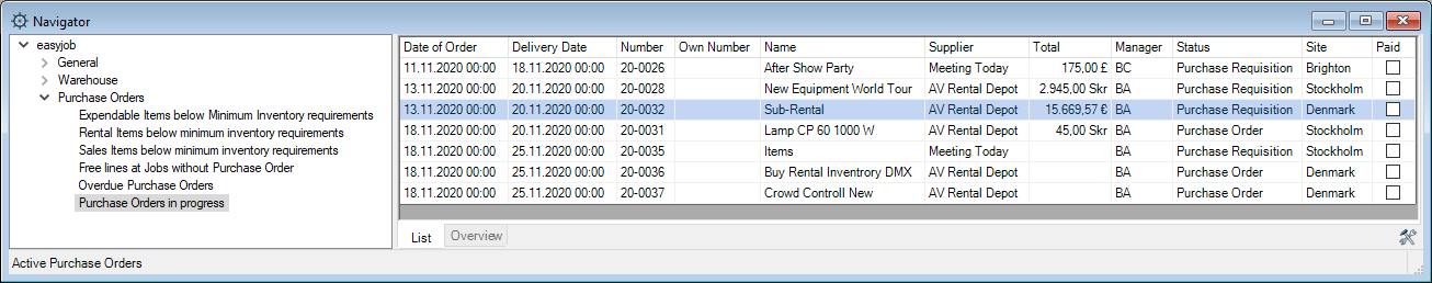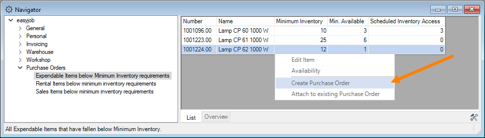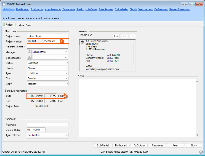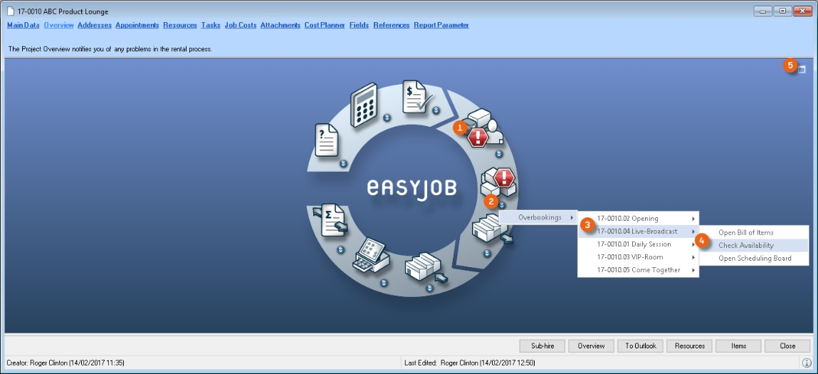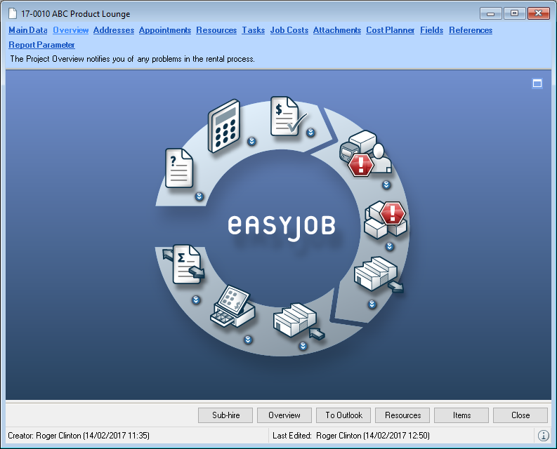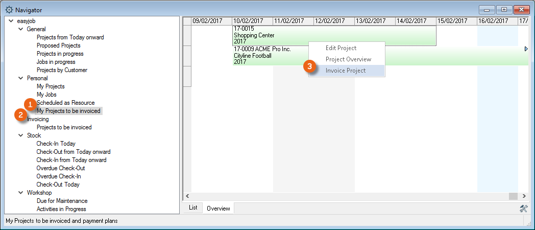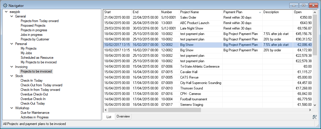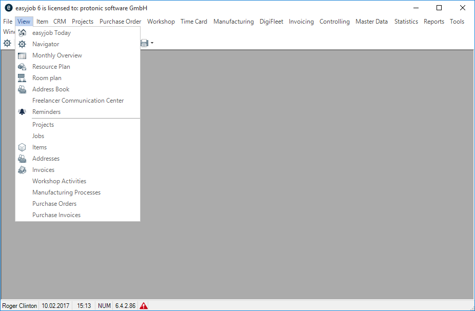 1. easyjob Menu Projects/Purchase Order/Workshop/Master Data Items/etc.
