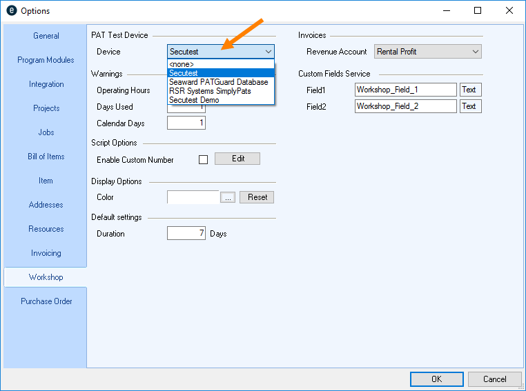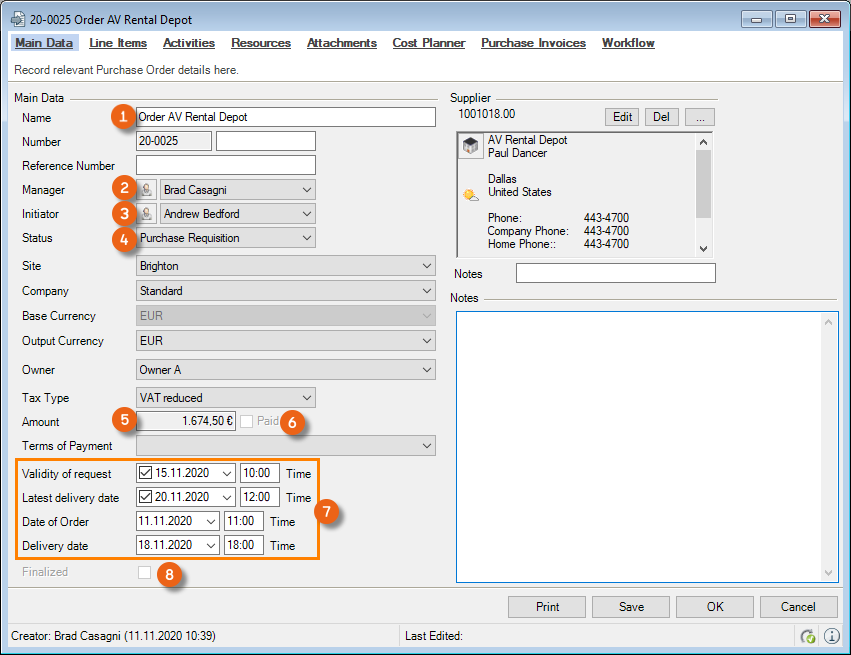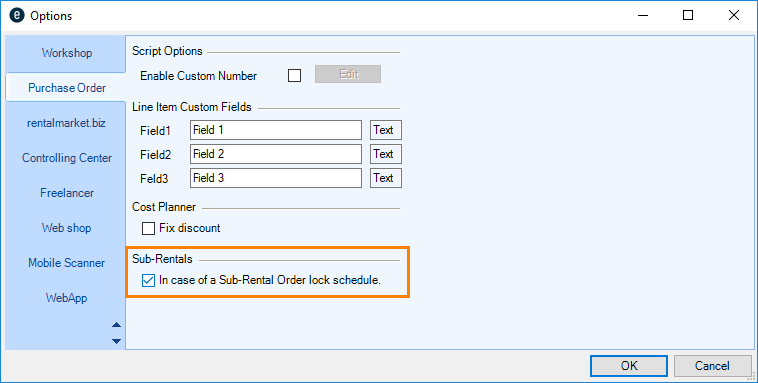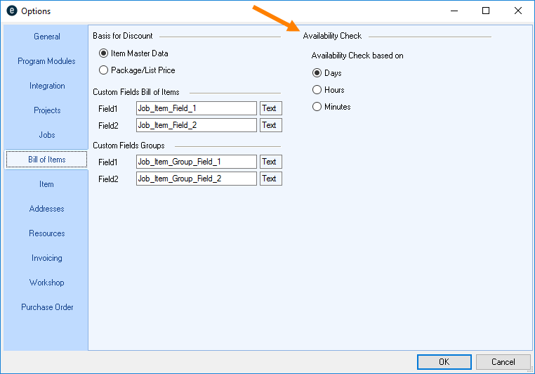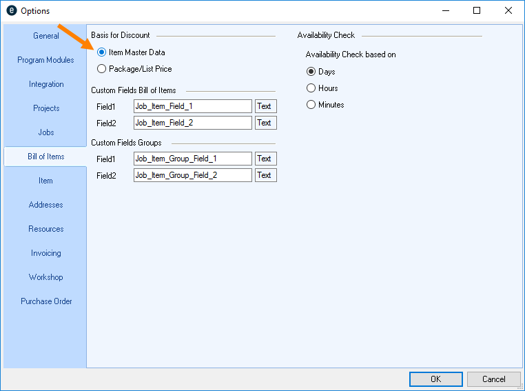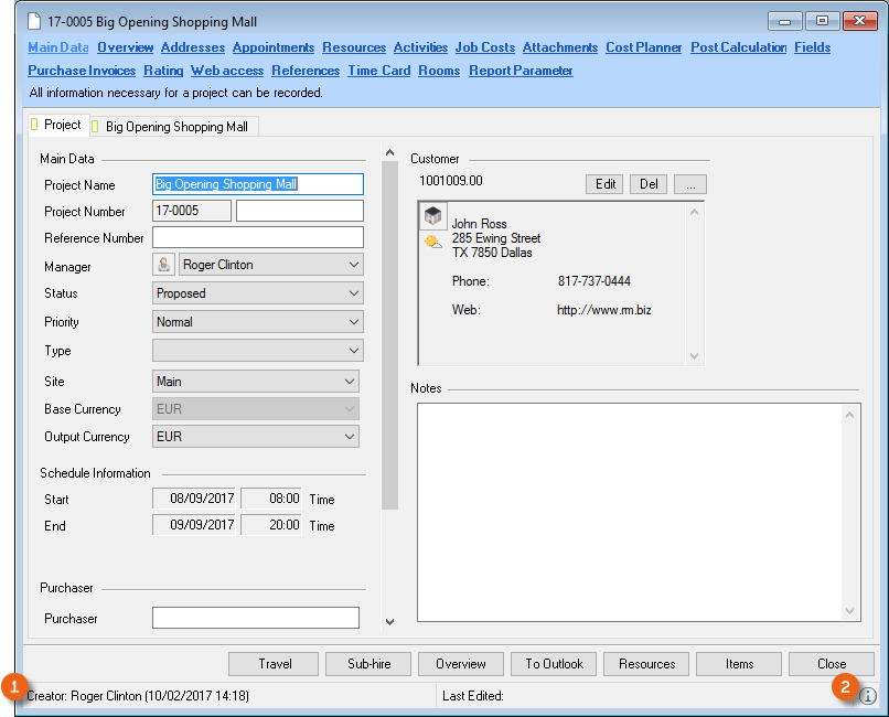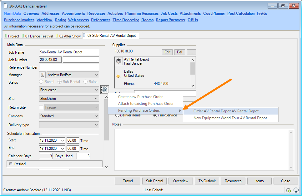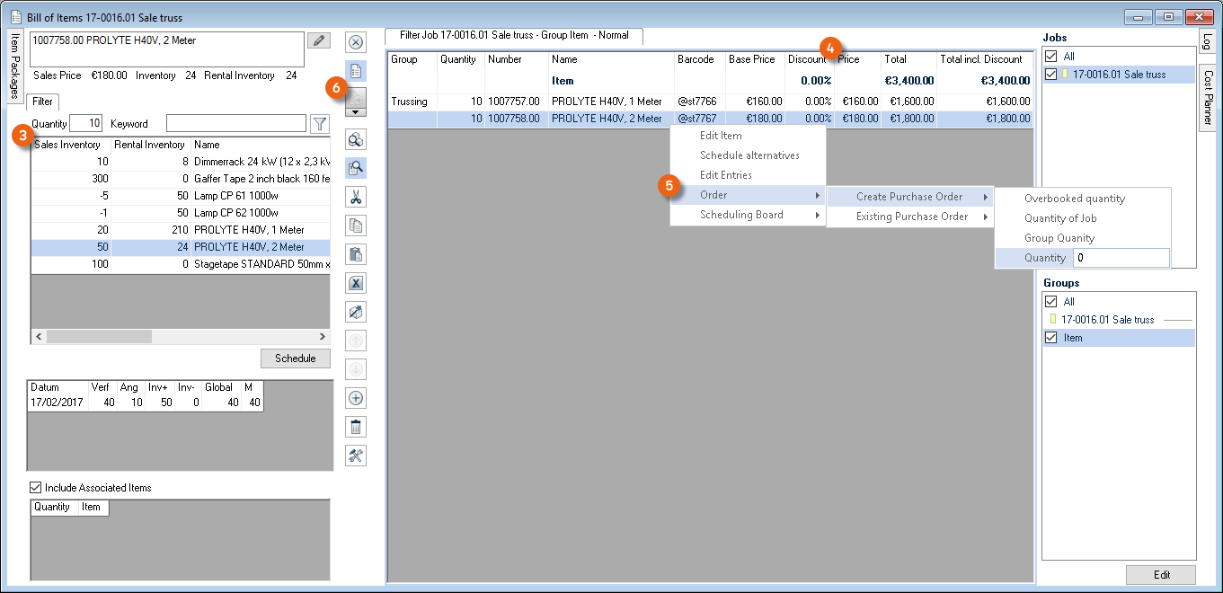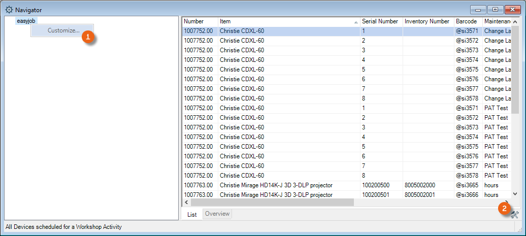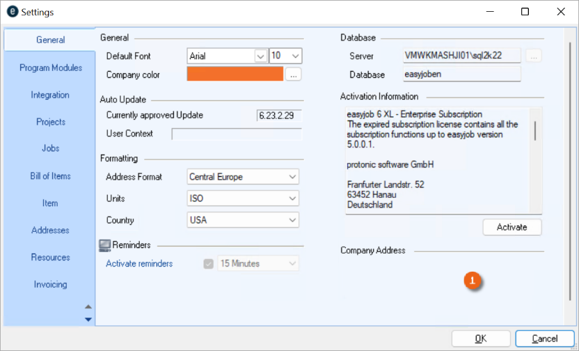 1. easyjob Menu Projects/Purchase Order/Workshop/Master Data Items/etc.