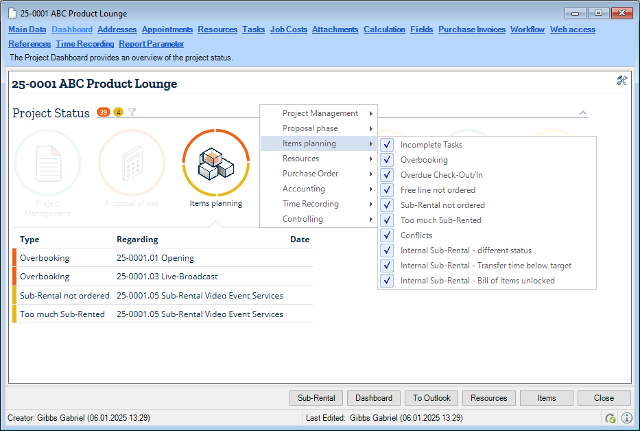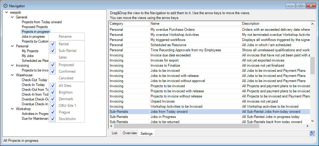 Due to performance reasons, only the most important lists will be automatically updated when changes are made. Automatic changes will be made in the address and item master data, Navigator, easyjob Today and Bill of Items views.