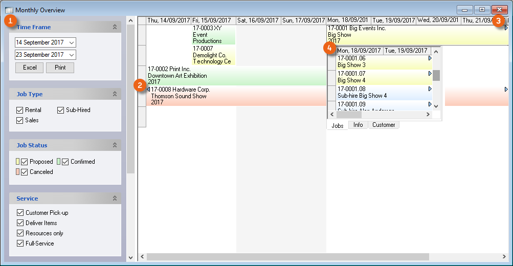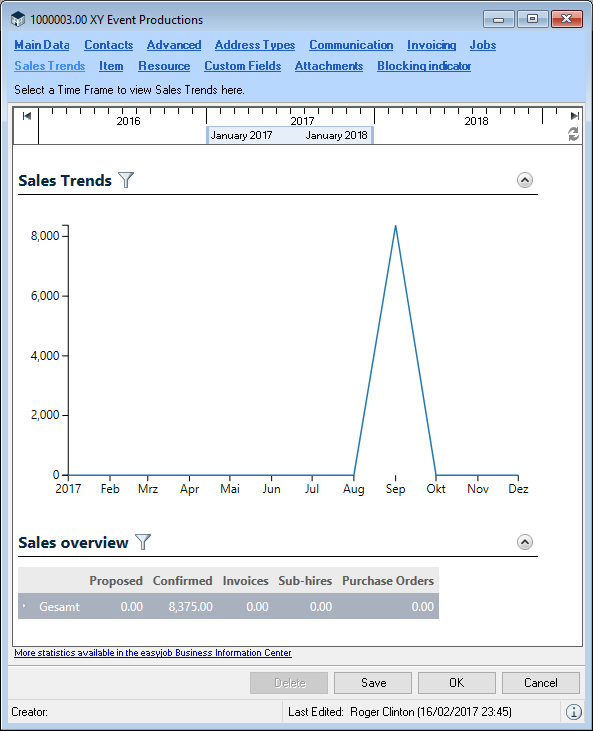The easyjob statistic functions are based on the easyjob Business Information Center. You can find a detailed manual at easyjob Business Information Center manual.