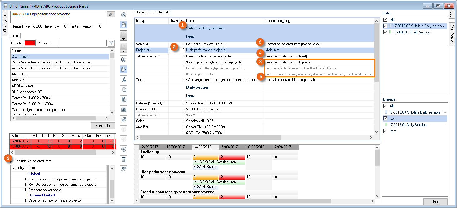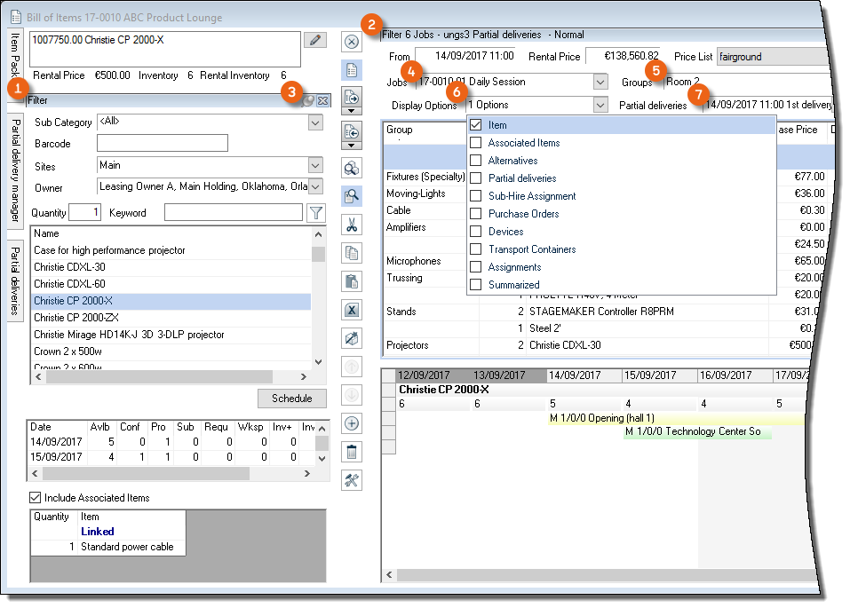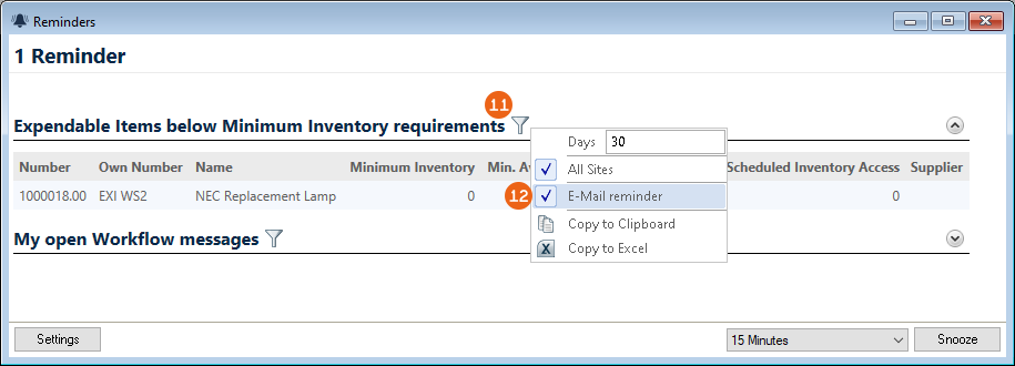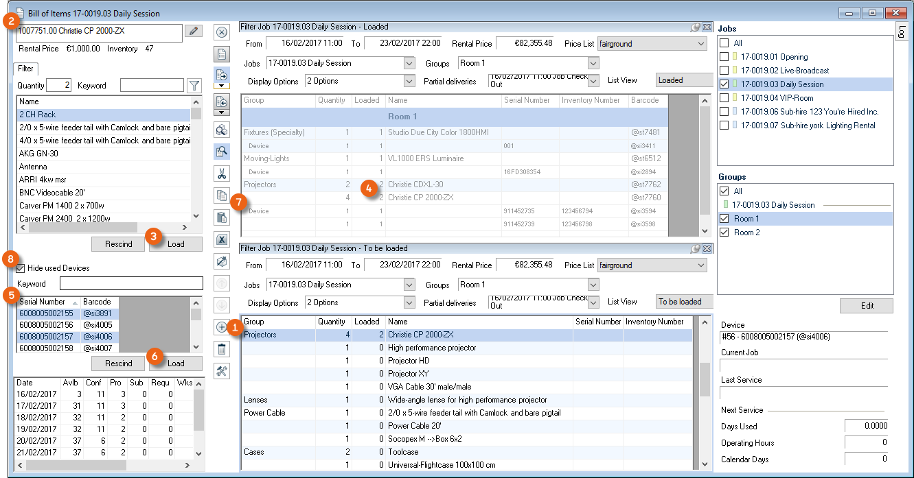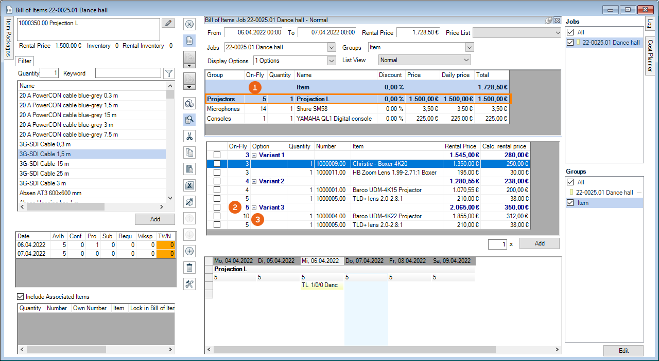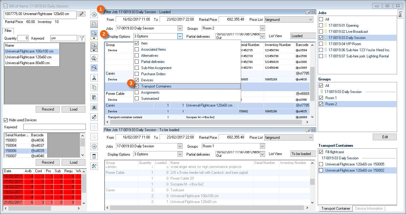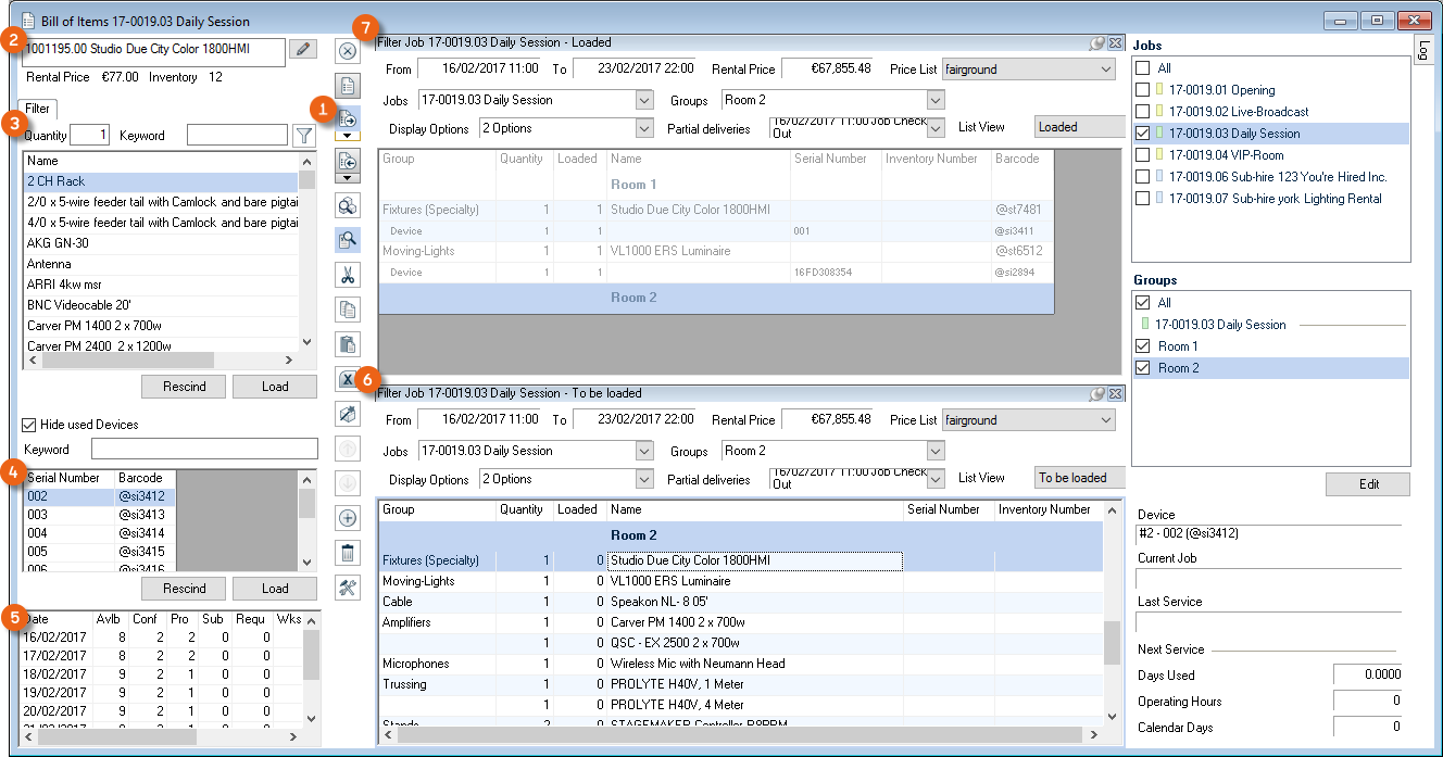 As is the case for the bill of items, various options are available for setting up the workspace. The layout and filter settings are stored for each user per workspace.