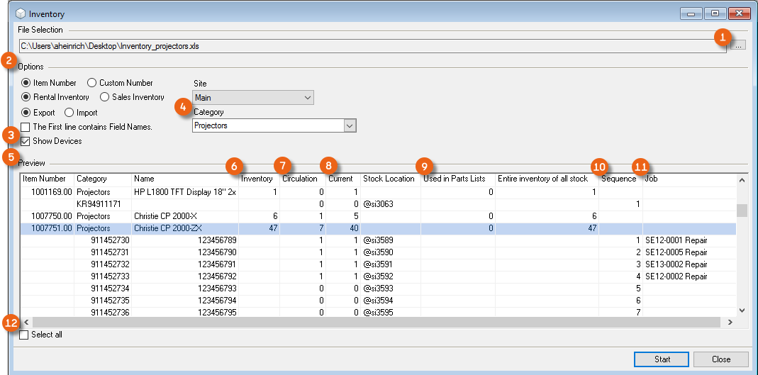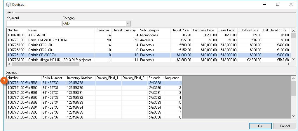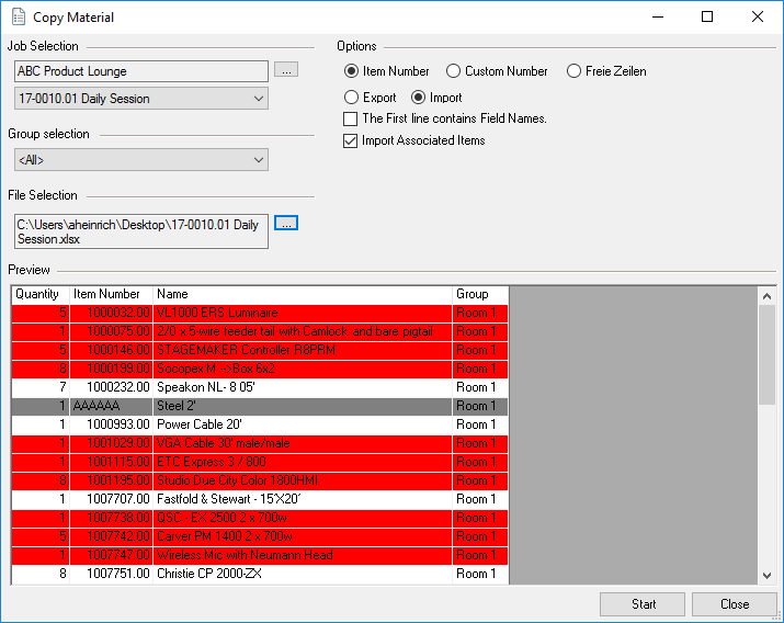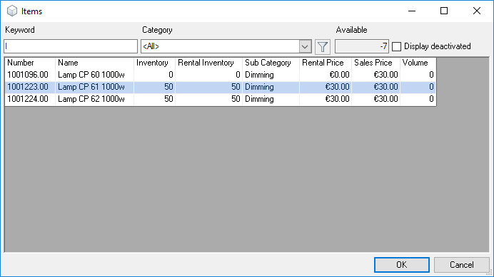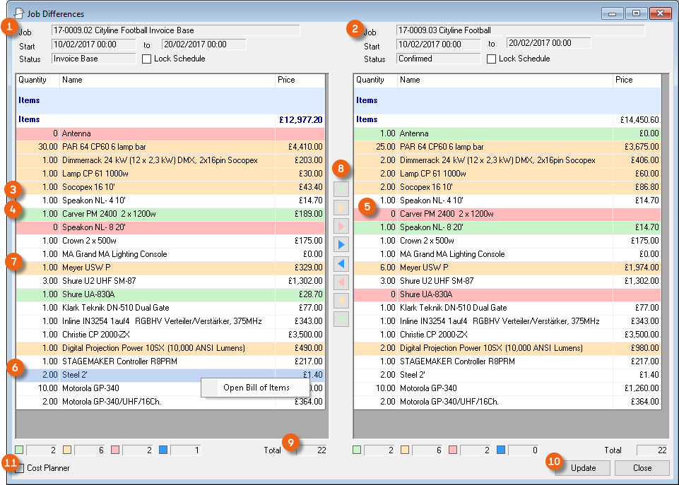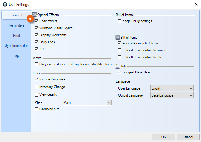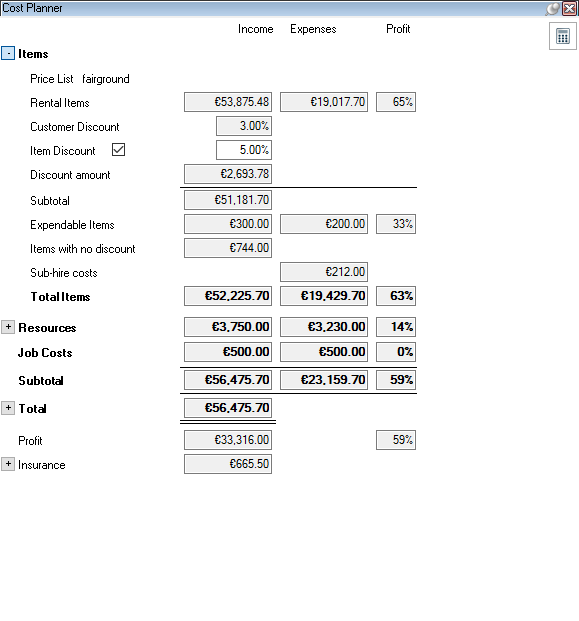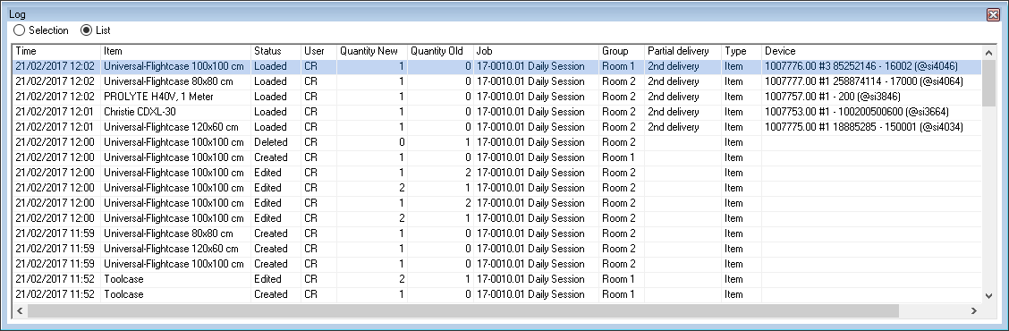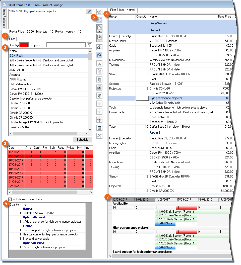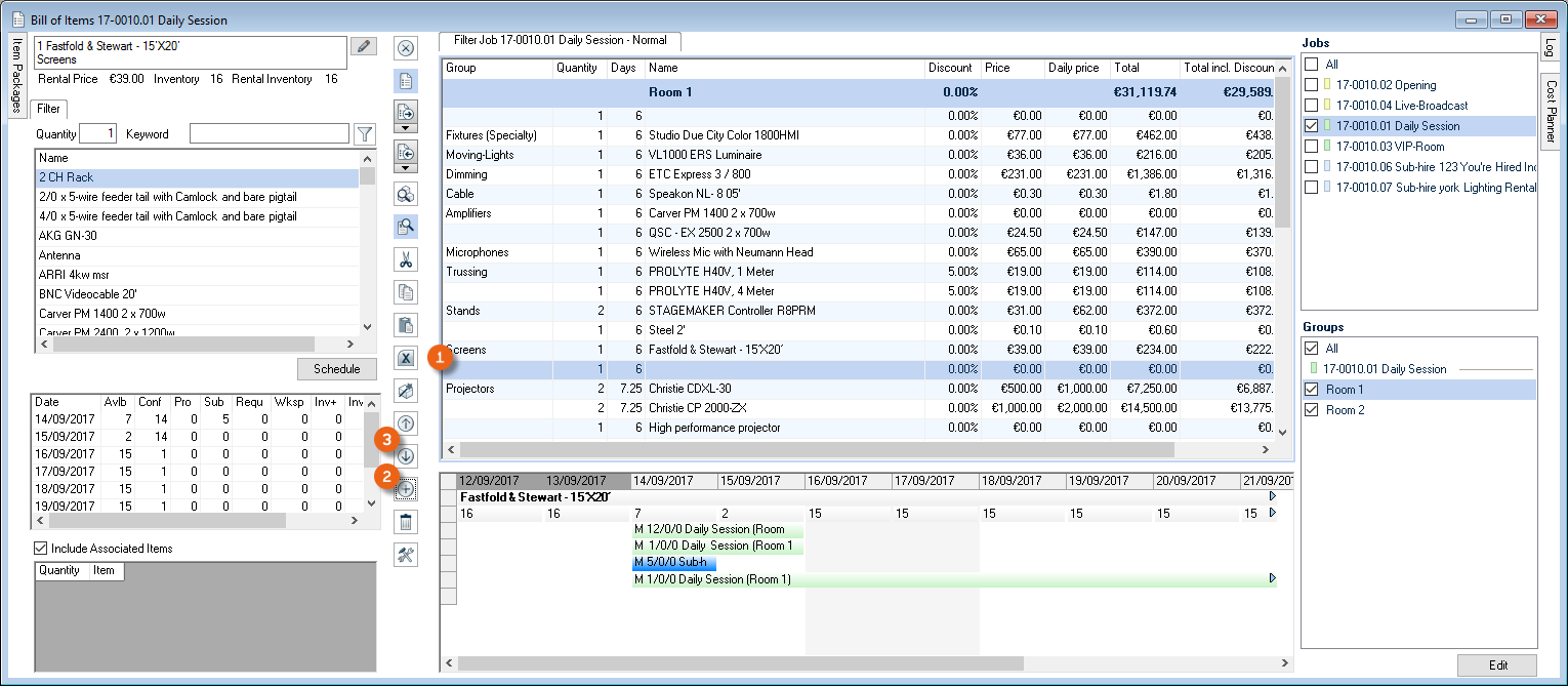 As is the case for the bill of items, various options are available for setting up the workspace. The layout and filter settings are stored for each user per workspace.