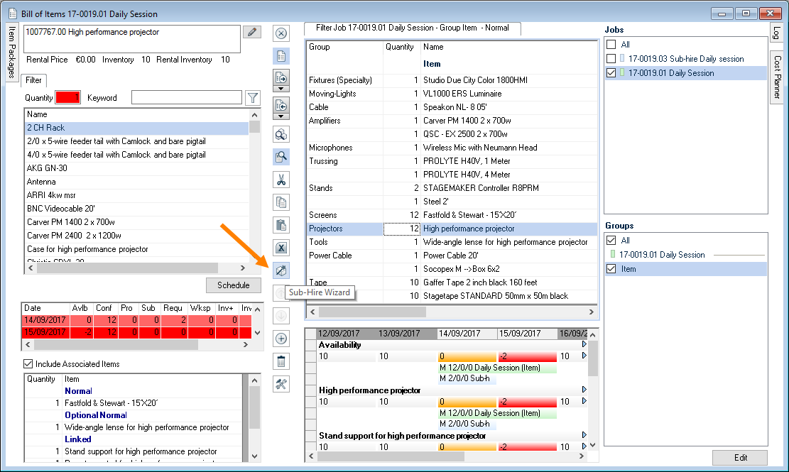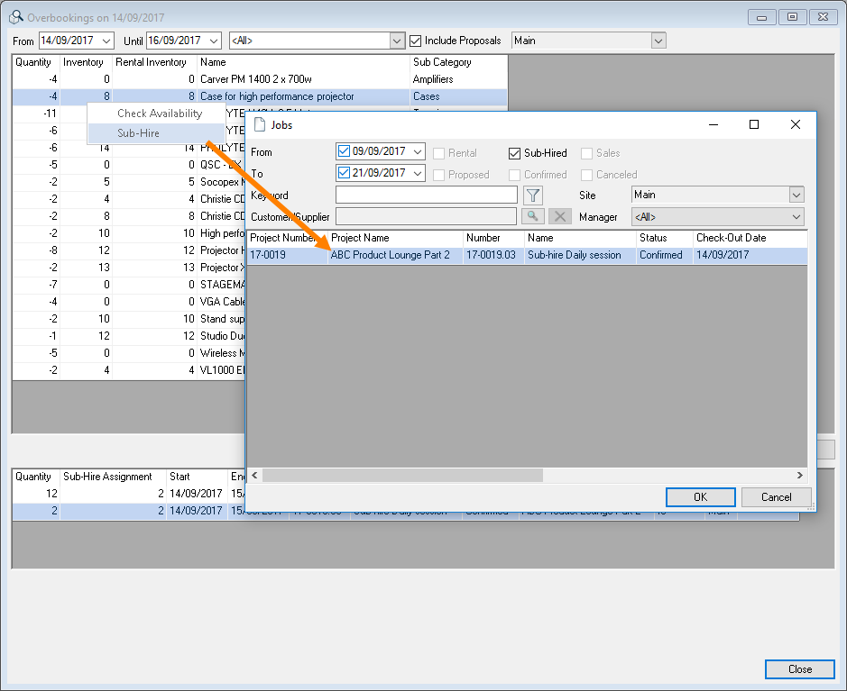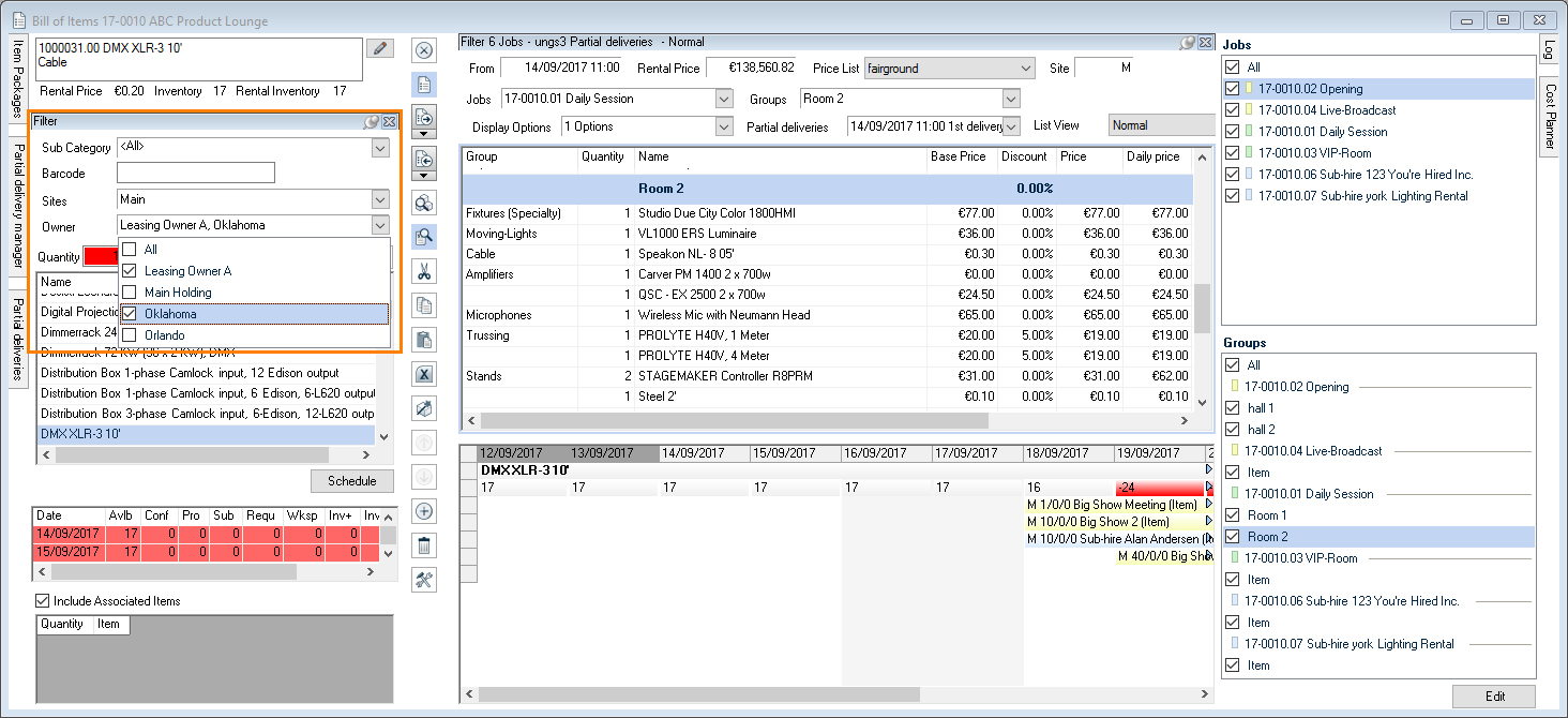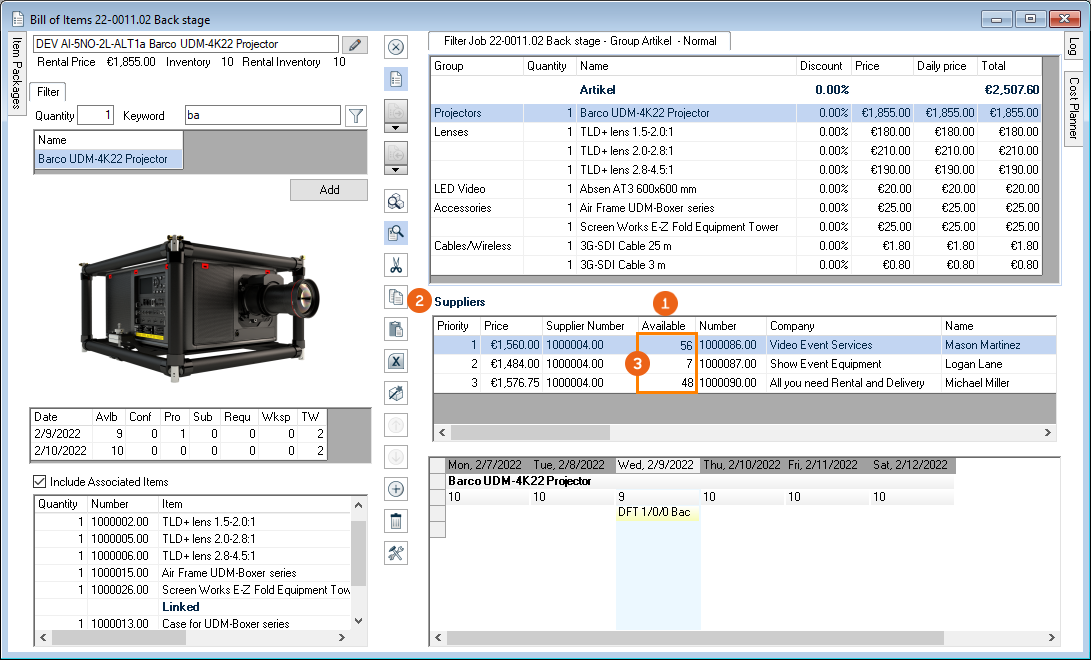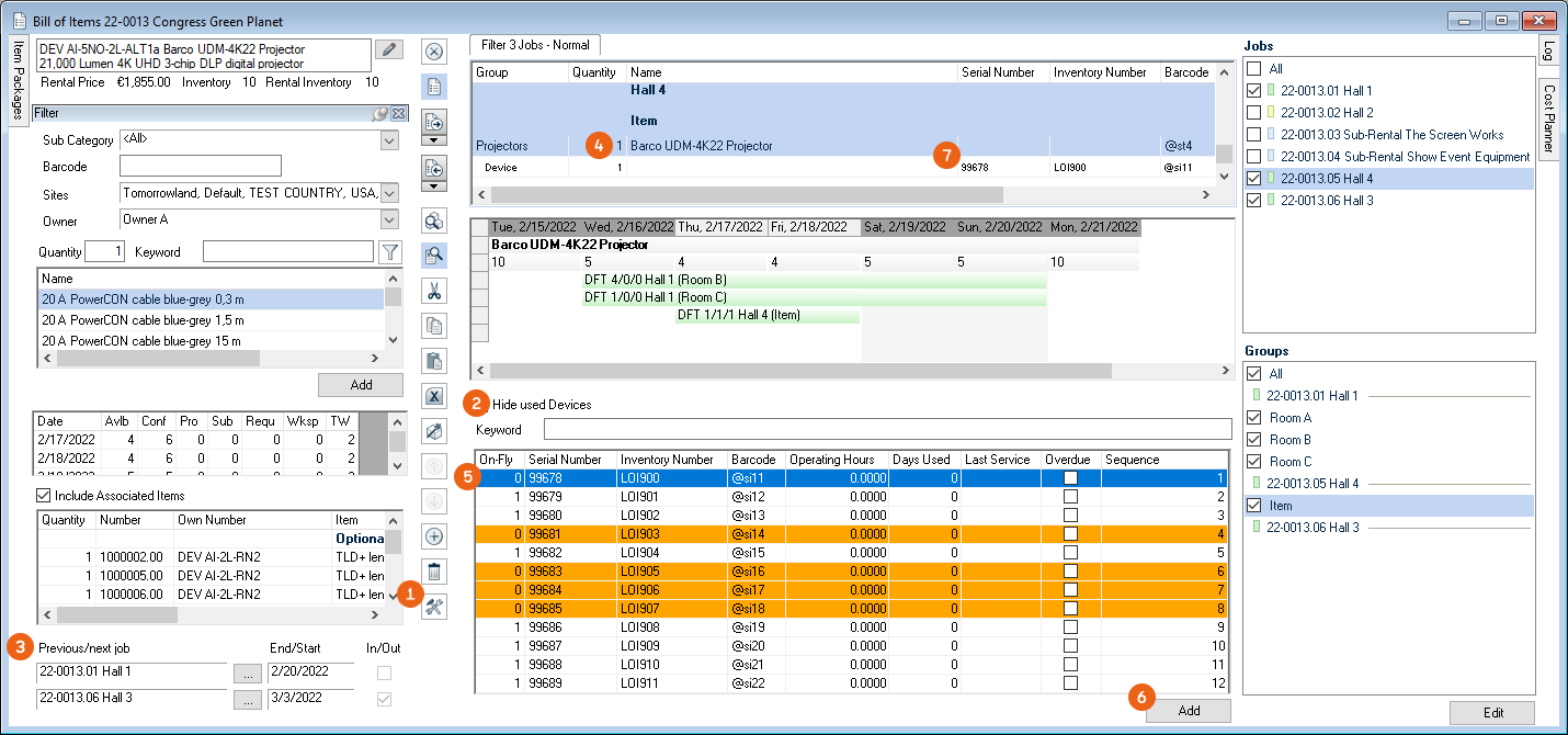 The event filter makes it possible to more efficiently make staff arrangements for multiple projects of an event.