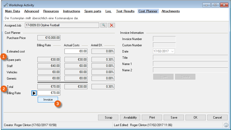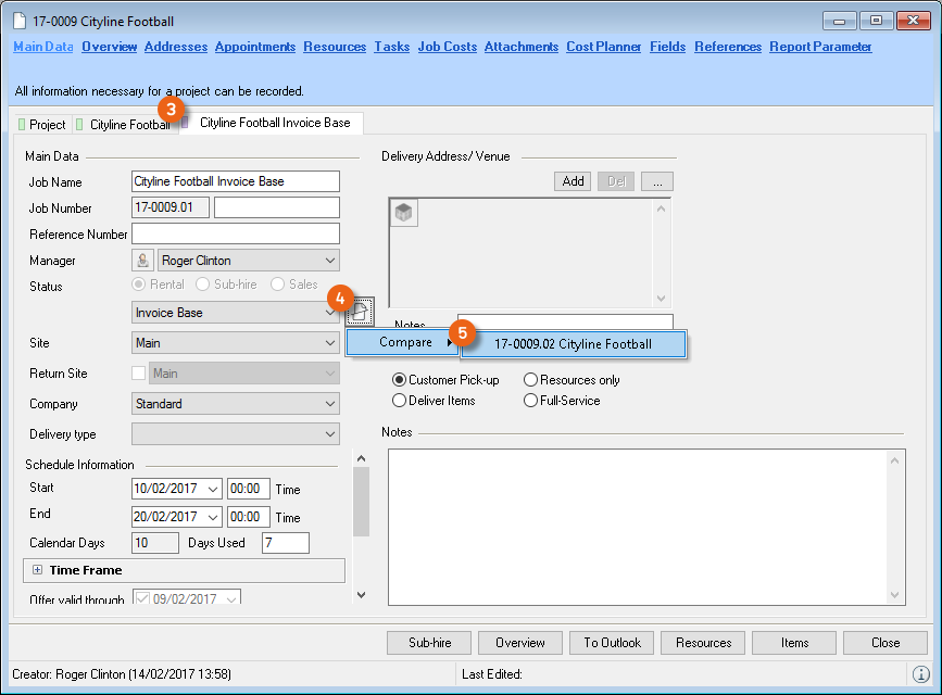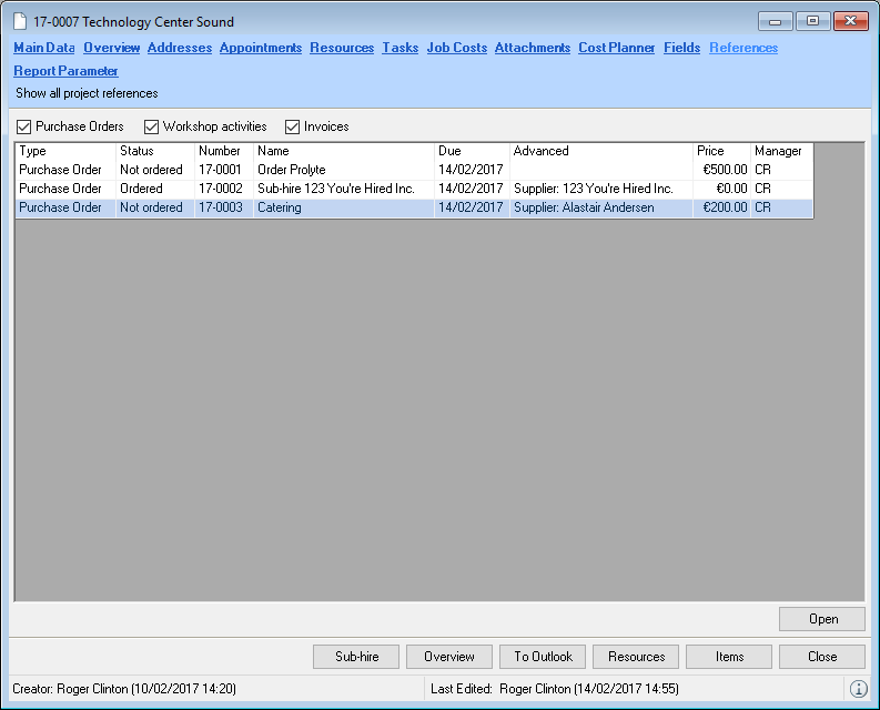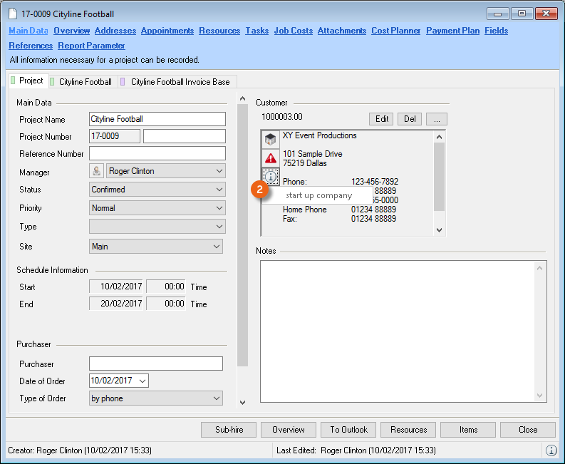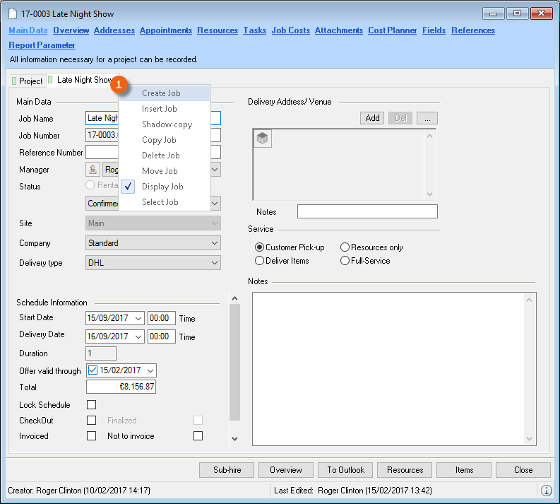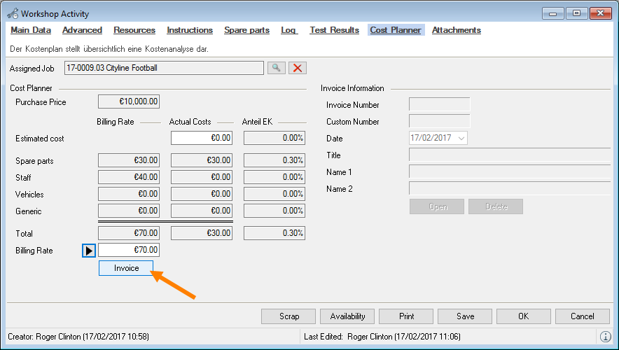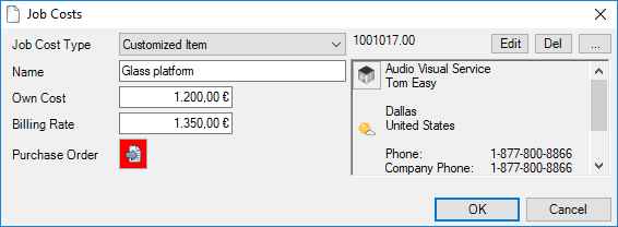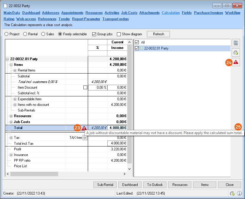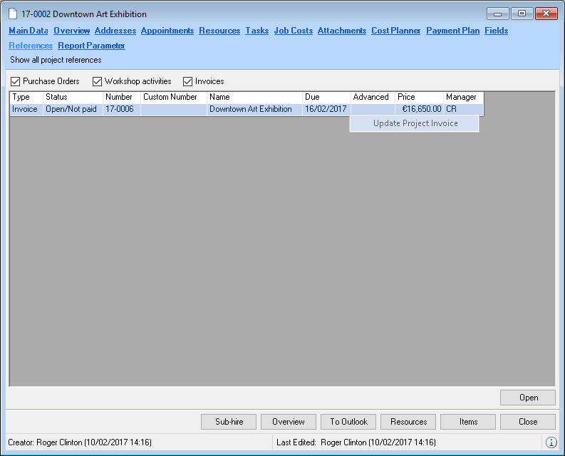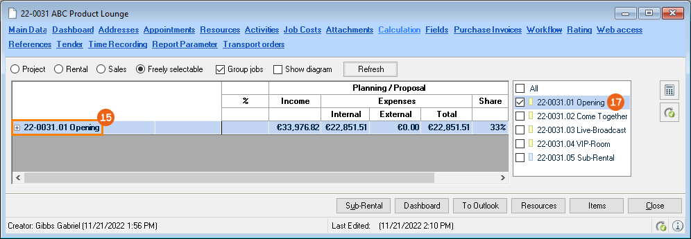 When selecting from the toolbar, easyjob automatically recognizes the currently open workshop activity. You do not need to select the desired dataset. When the offer is output, the open project is used.