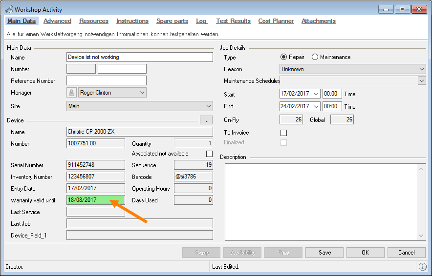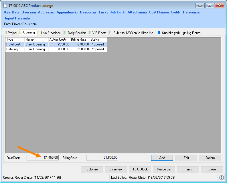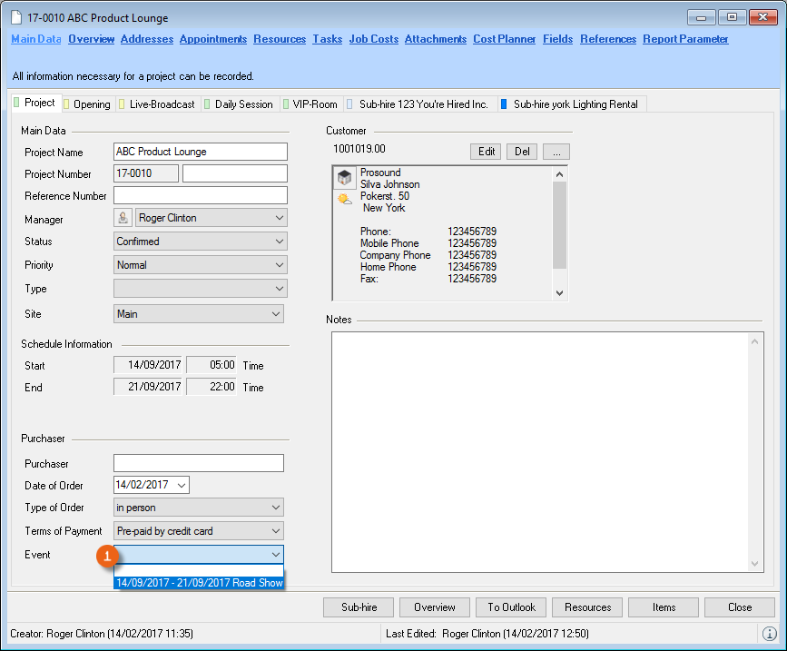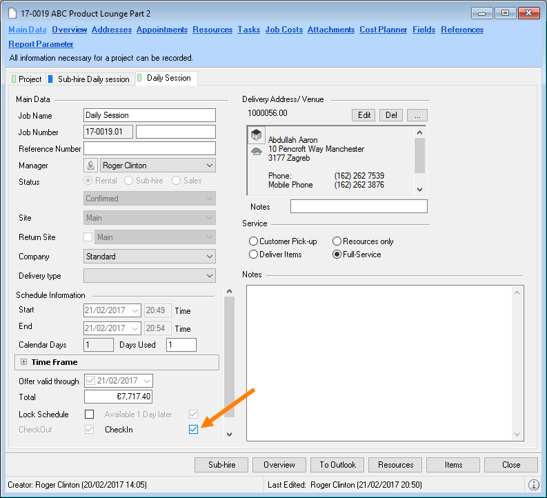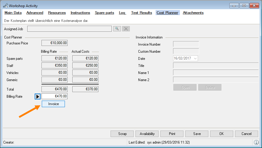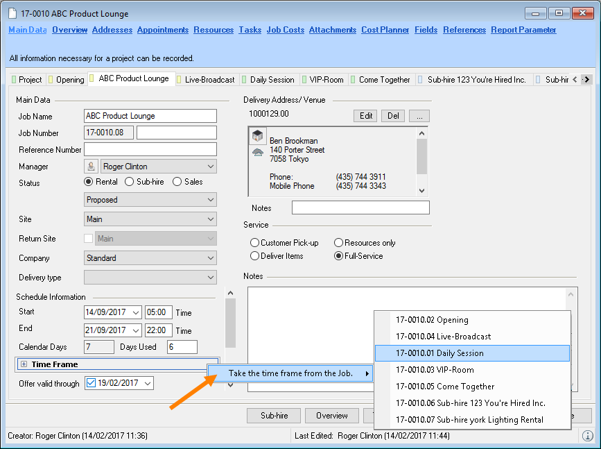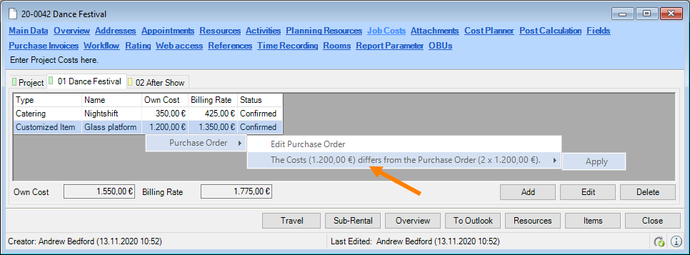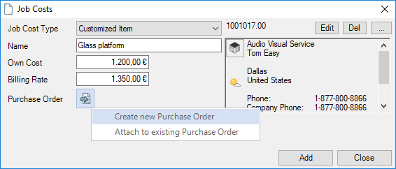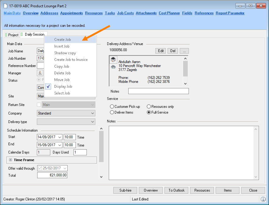 When selecting from the toolbar, easyjob automatically recognizes the currently open workshop activity. You do not need to select the desired dataset. When the offer is output, the open project is used.