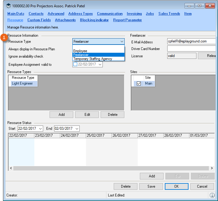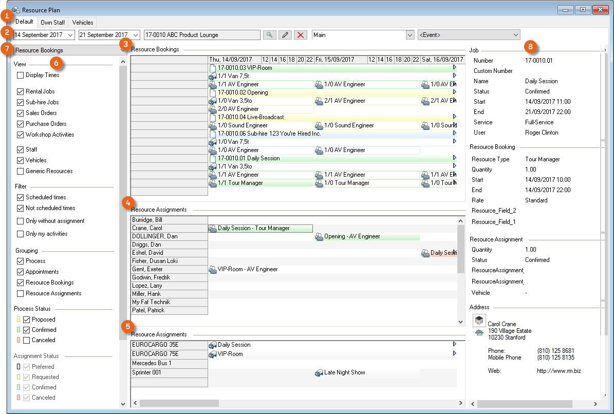 Job Description![]() | Here you can completely hide the Resource Assignments in the area. With Resource Status you can also see absences assigned to a person, such as vacation, sick days, etc. Appointment/task type CRM activities can be displayed for staff. |