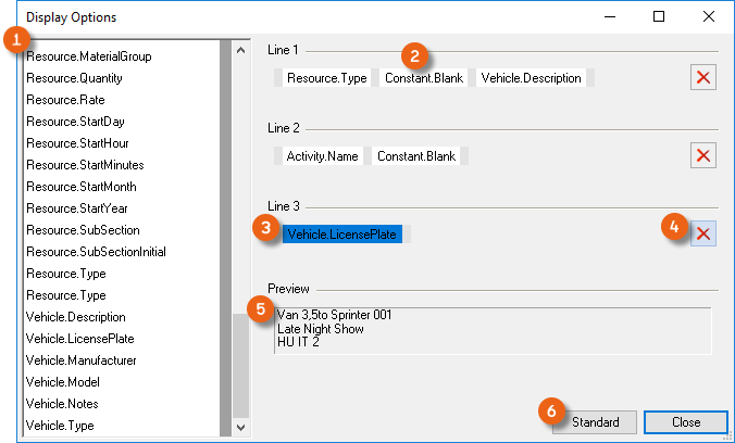 View ![]() | Here you can select the content to be displayed in the Resource Information area. |