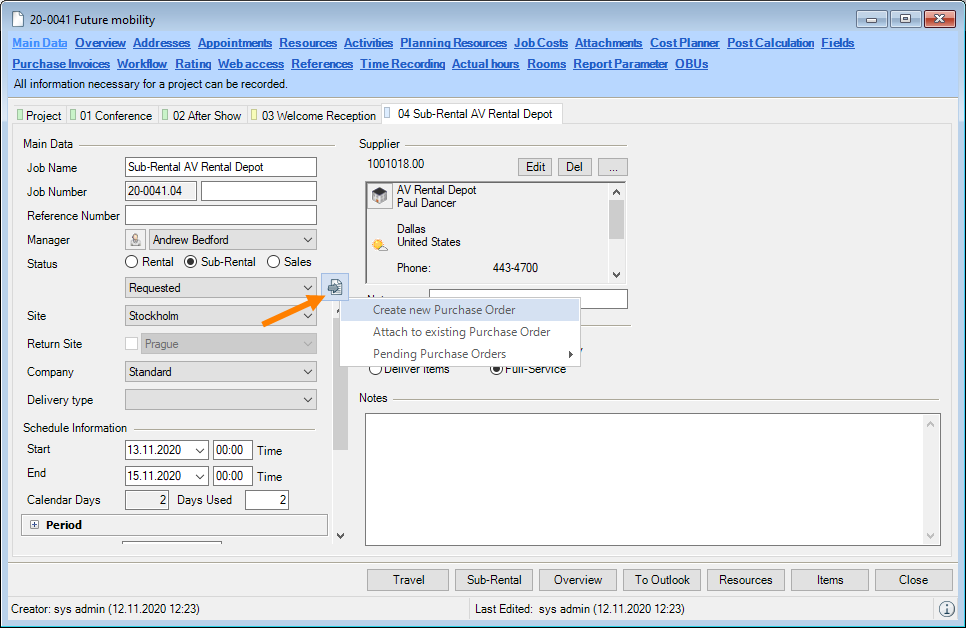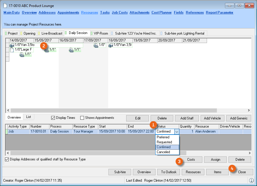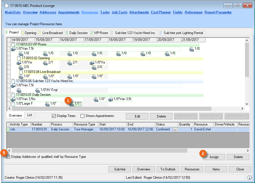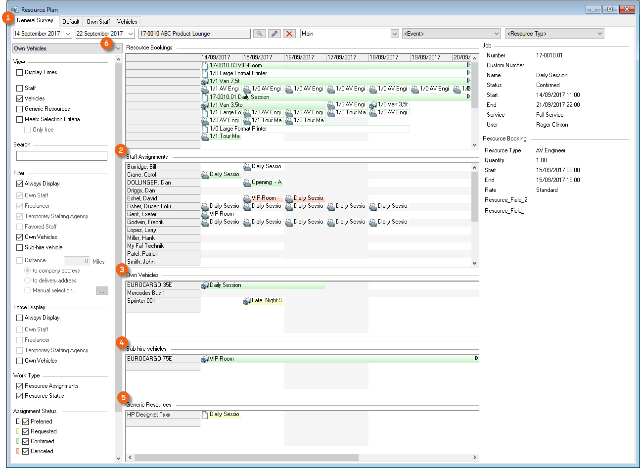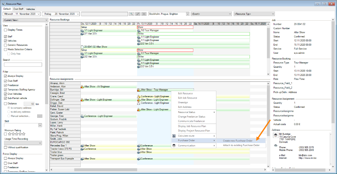 Booking a vehicle is basically identical to booking staff. For this reason only booking staff is described below in more detail.