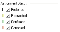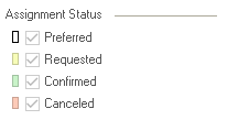 Assignment Status ![]() | To check which resources you have requested but that are not confirmed, you can filter the view by resource status. |