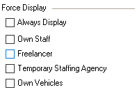 Forcing![]() | The settings in Forcing define that staff/vehicles are also displayed even though the filter settings would filter out the data. |