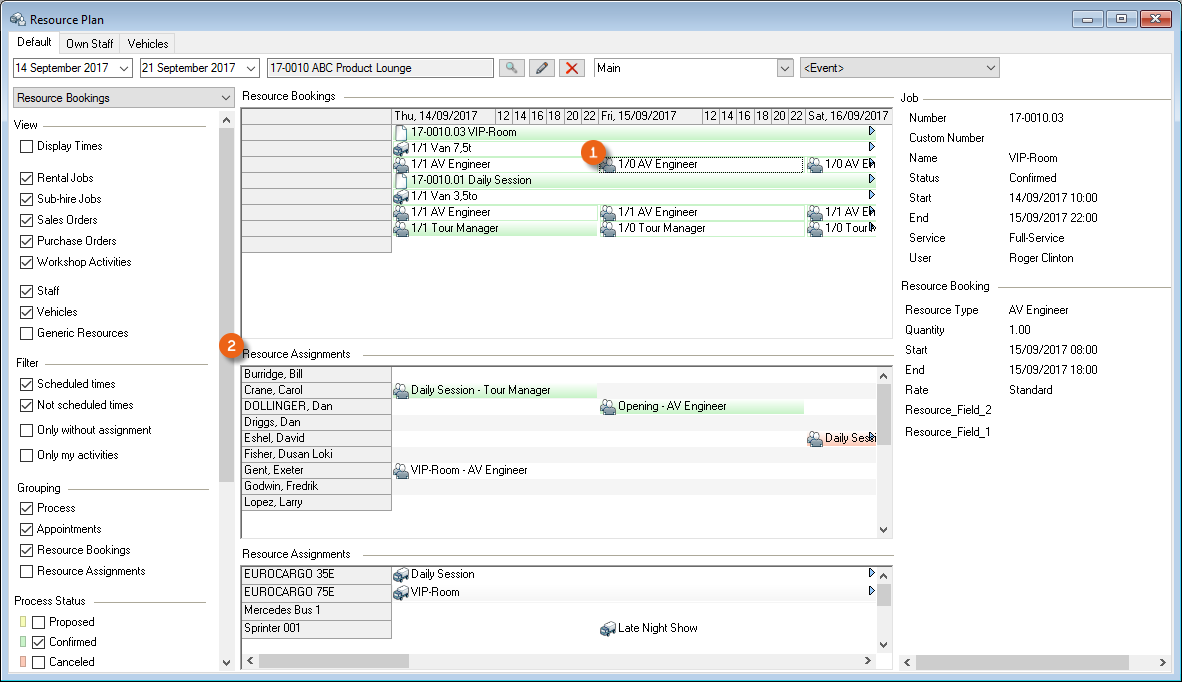View, filter, grouping and forcing settings provide a wide range of possible uses. There are various settings for the resource booking, staff assignments and resource information activities.