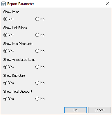 The report parameter dialogue will appear after selecting the desired template.
