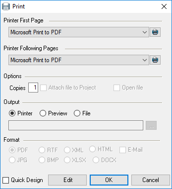If for example the first side of the printout should be on letterhead with the company logo and the following sides should be on white paper, various printers can be selected.