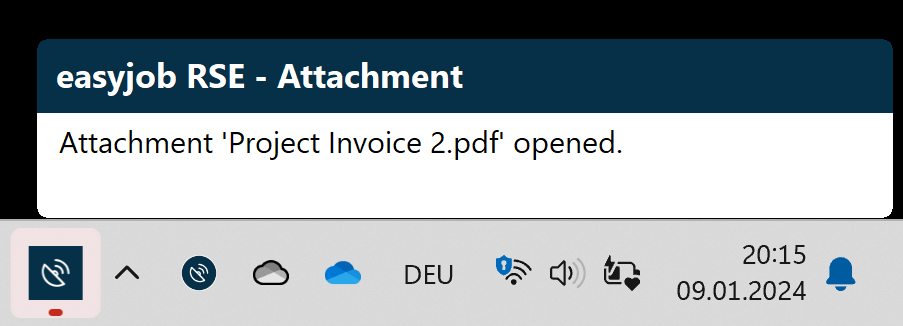 In every easyjob process with Attachments tab, you can record and call up attachments from external windows programs. Attachments can be CAD drawings, Excel tables, images or PDF documents. The corresponding application must be installed in the computer to open the document. In order to keep the database as small as possible for quicker database queries, a reference to the file is saved for the attachment.