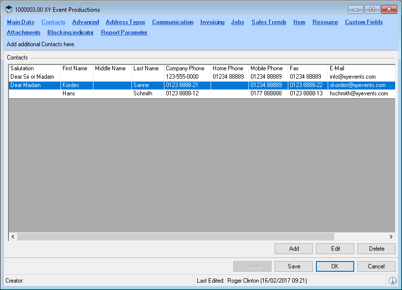 As the Master Data refers to already used Workshop Activities, when deleting the system will ask for the replacement data set. If you want to delete a salutation, for example, the system will ask you for the replacement salutation. The deleted salutation will be updated with the replacement in all addresses and contacts.