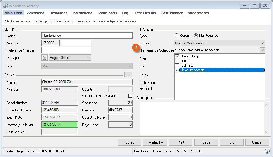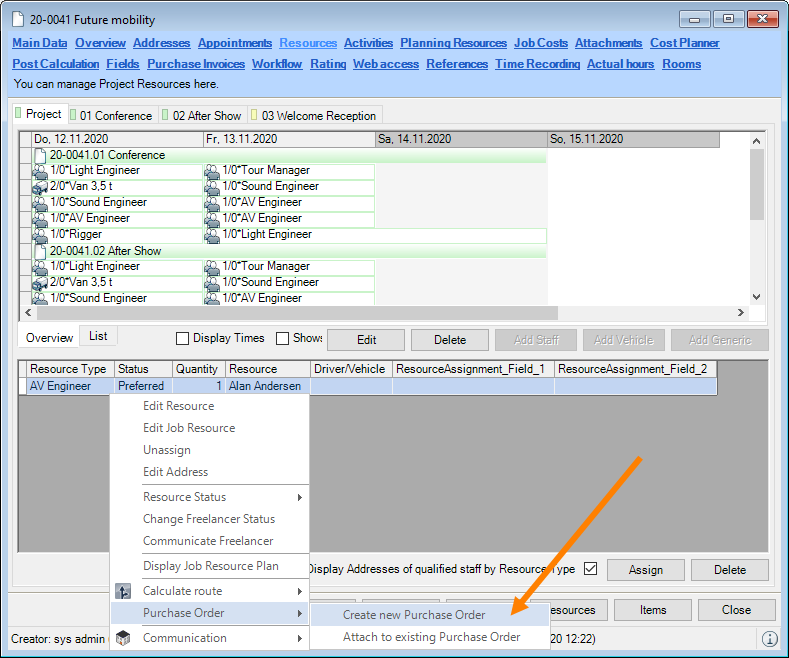 In order to assign a resource to multiple workshop activities faster, it is now possible with multi-select to select multiple entries at the same time.