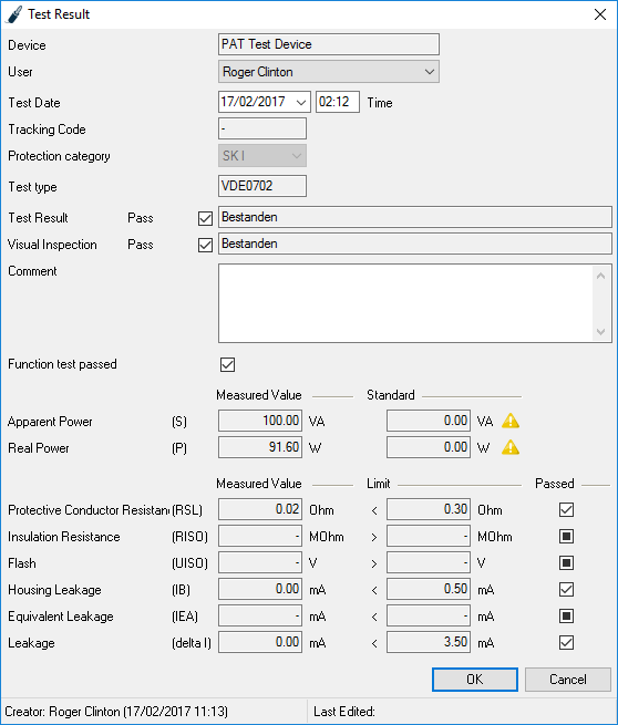 confirms the Ok Button.