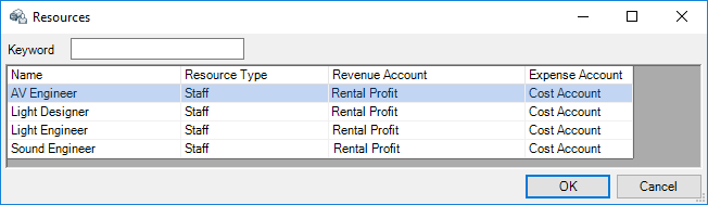 6. The resource assignment area will only display staff members who fit the selected resource type .
