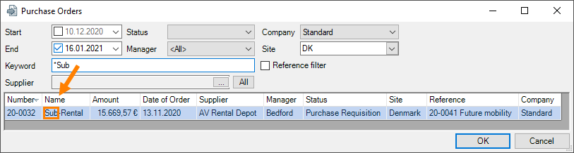 To use the filers quickly, easyjob automatically places an asterisk "*" behind your entry internally.
