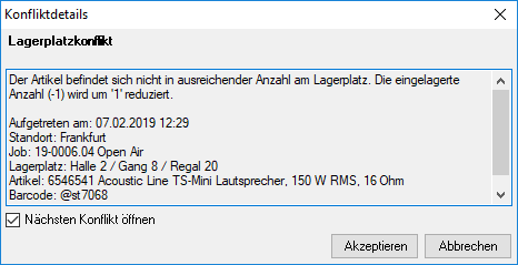 With a batch scanner, all scanned barcodes are stored on the device. The device does not have any additional intelligence. A signal tone will signal that the barcode was correctly processed. After all barcodes have been scanned, the barcodes are read and processed using the easyjob batch mode. Any existing conflicts are identified and must be resolved.