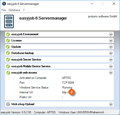 Example: C:\Program Files (x86)\protonic software\easyjob 6\WebApi\Web