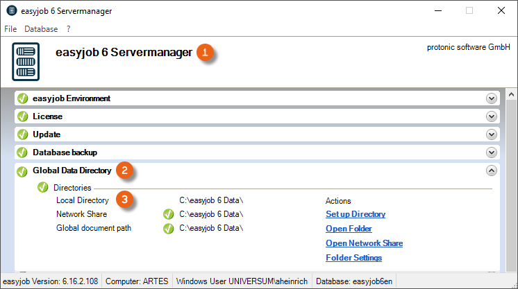 You can find the path for the global data directory in the easyjob Server Manager under Global Data Directory and then the Local Director .