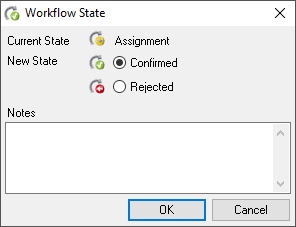 The assignment is authorized or rejected via the workflow dialogue. You can also add a comment.