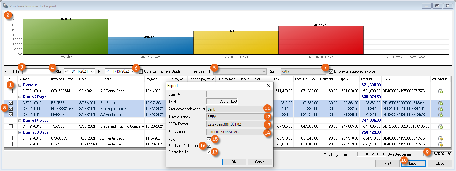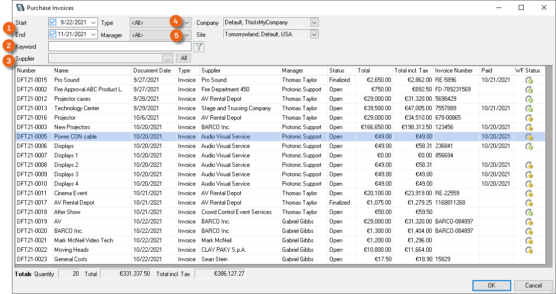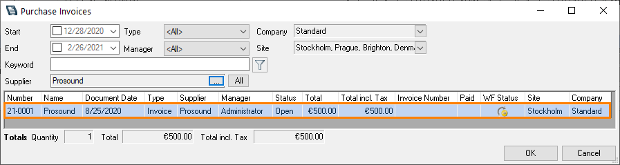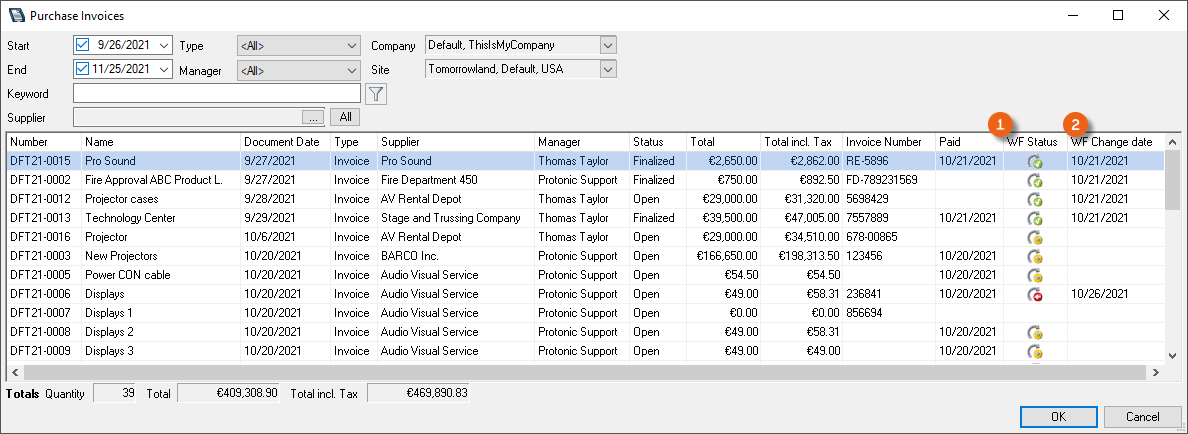 In the purchase invoice overview, the WF Status , as well as the change date are both displayed.