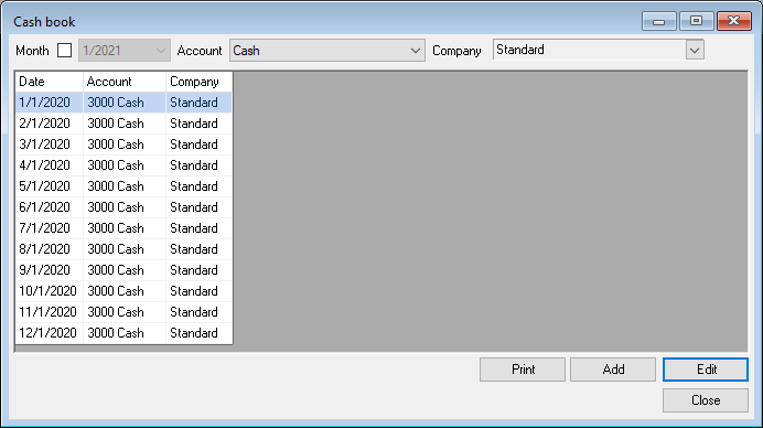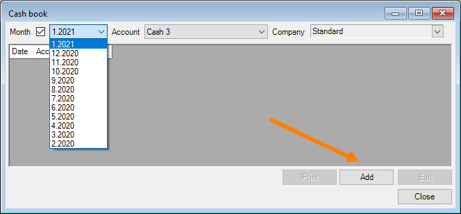 Adding a new month for cash book entries