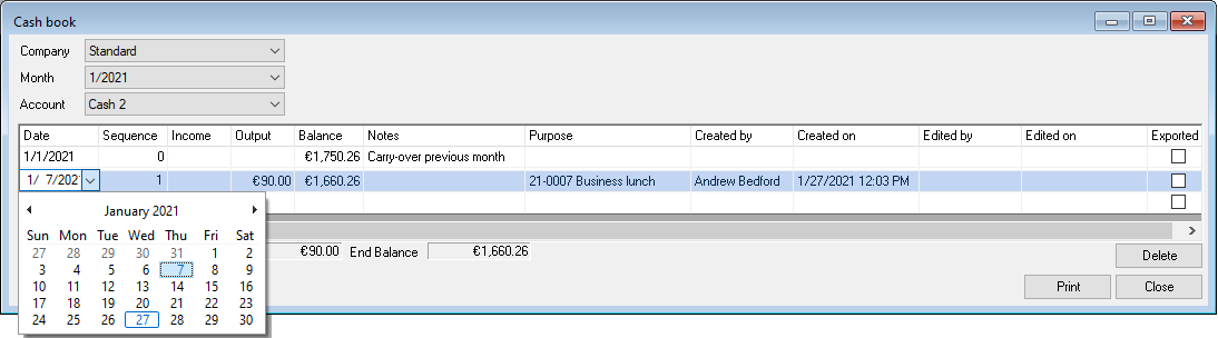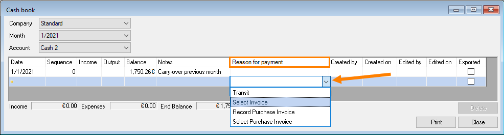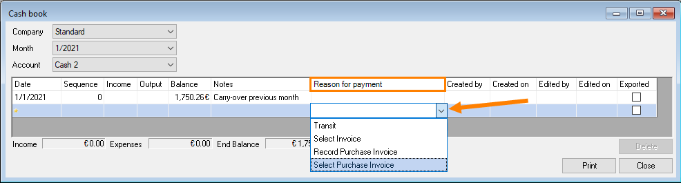If you make a cash book entry from a Purchase Invoice, from this moment (date) you cannot make any earlier entries. The corresponding purchase invoice cannot be deleted.