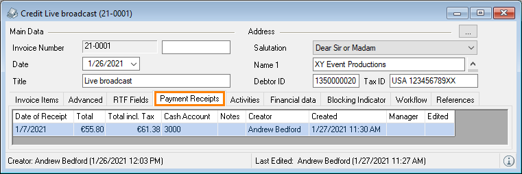 9. The payment receipt is automatically created in the invoice