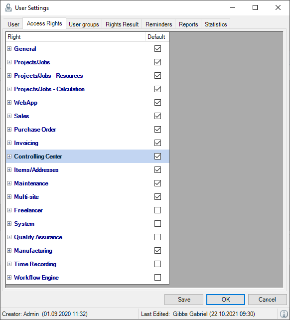 There are various Controlling Center rights available in the User Rights Manager.