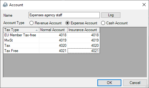 Use is basically identical for the income accounts. As expense account assignment is generally done in more detail, various expense accounts can be selected in the various program modules and areas.