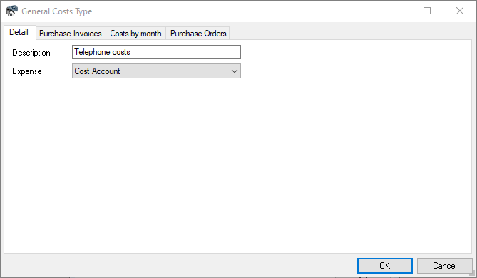 The corresponding expense account can be selected for each general expense type. When assigning a purchase invoice to the general expense type, the selected expense account is used.