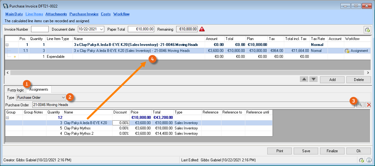 To ensure the checking of received invoices, an authorization process is started when assigning purchase invoices.
