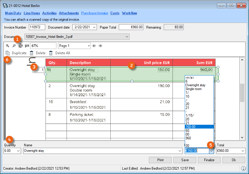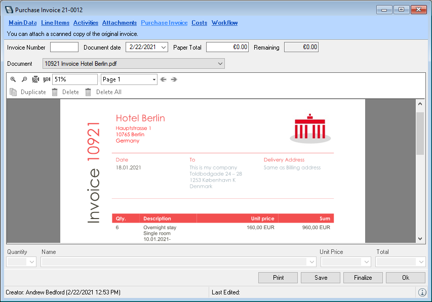 2. Enter the purchase invoice data