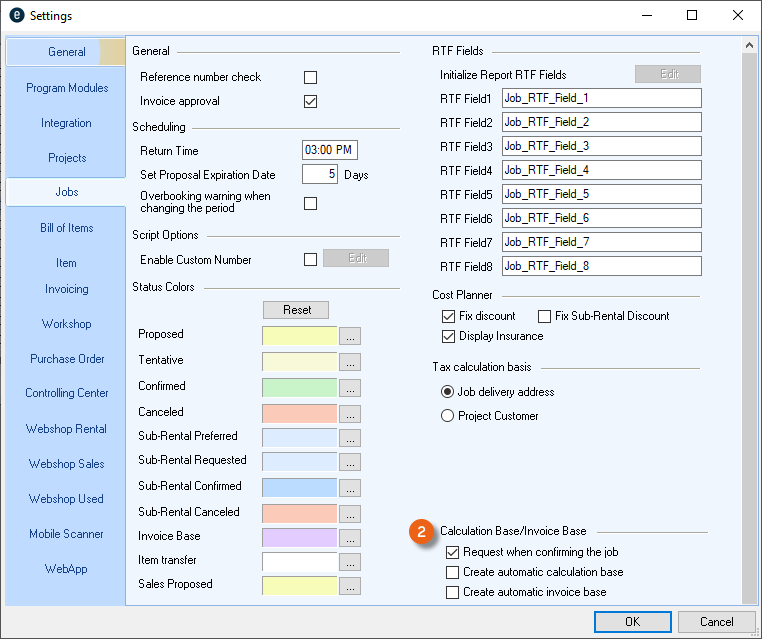 1. easyjob Menu Tools Settings
