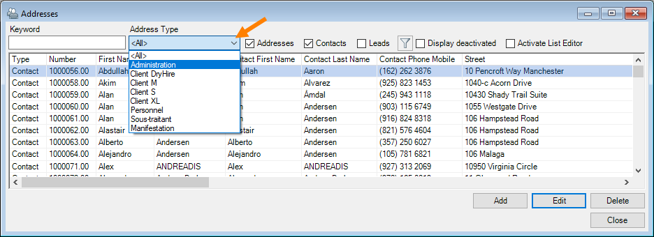 3. Address Type dropdown