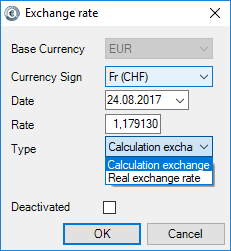 easyjob differentiates between the calculation exchange rate and the real exchange rate.