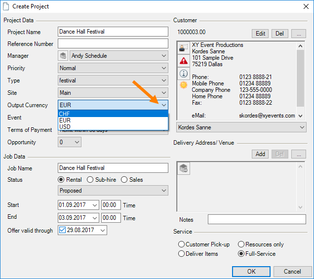 You can offer and invoice your projects in a foreign currency. The prices are calculated based on the base currency that was set.