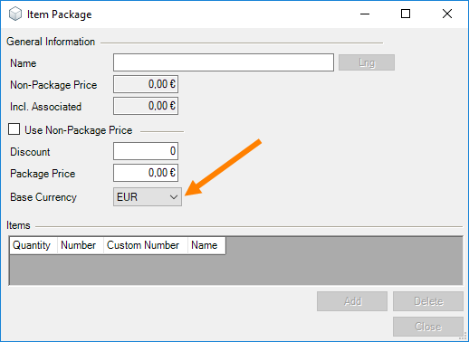 When creating Item Packages, you can also select the desired currency.