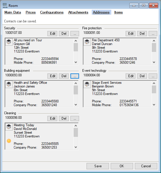 You can assign the addresses and contacts you need in the room for each room.